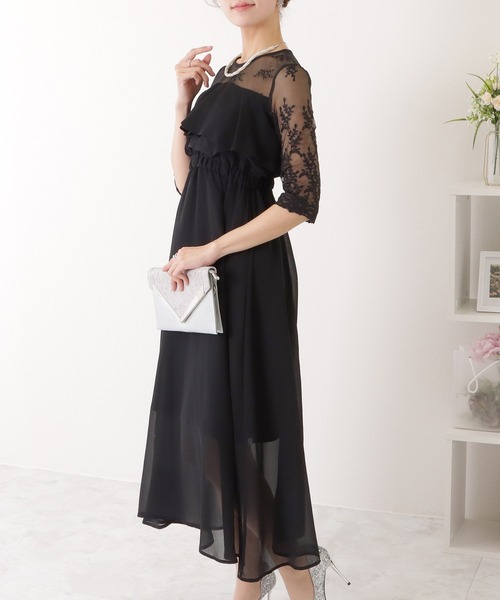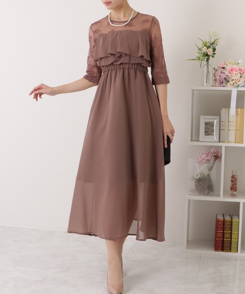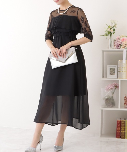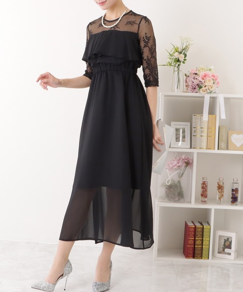 キーワード:ドレス フリル フレア レース ロング 花柄 七分袖 五分袖 無地