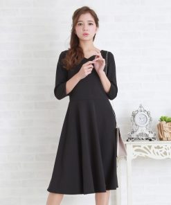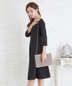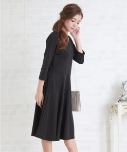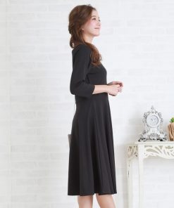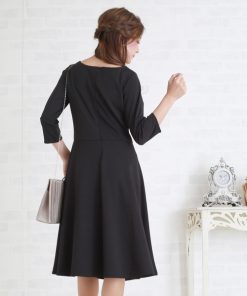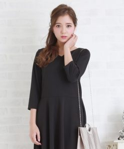 キーワード:ドレス フレア 七分袖 五分袖 膝丈 無地