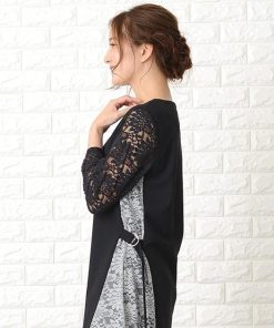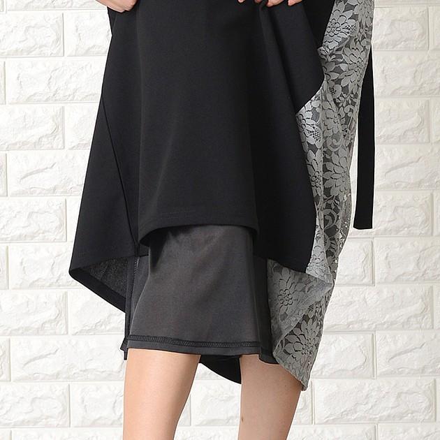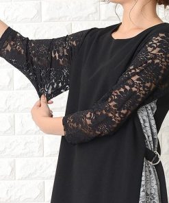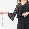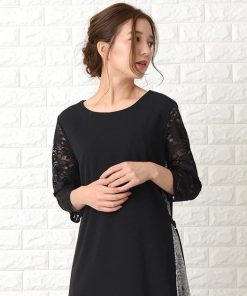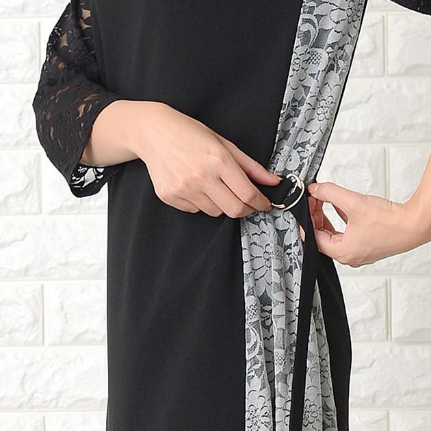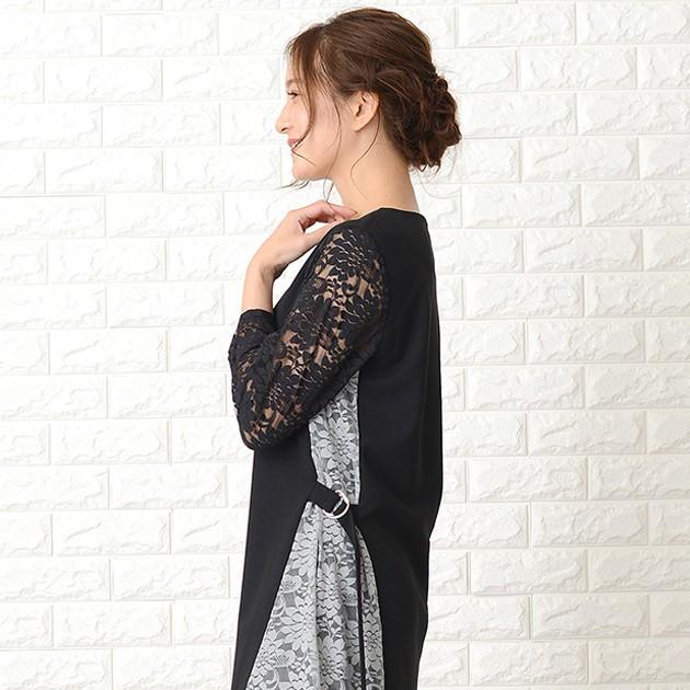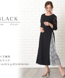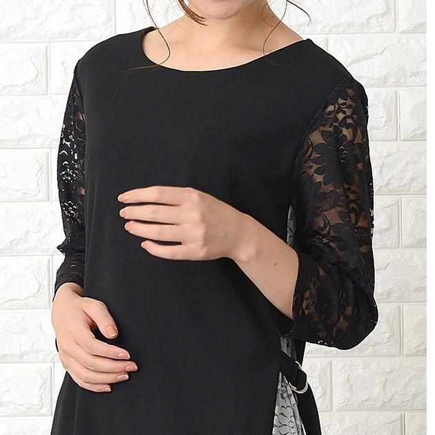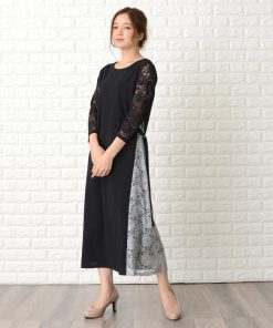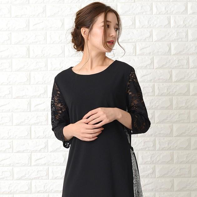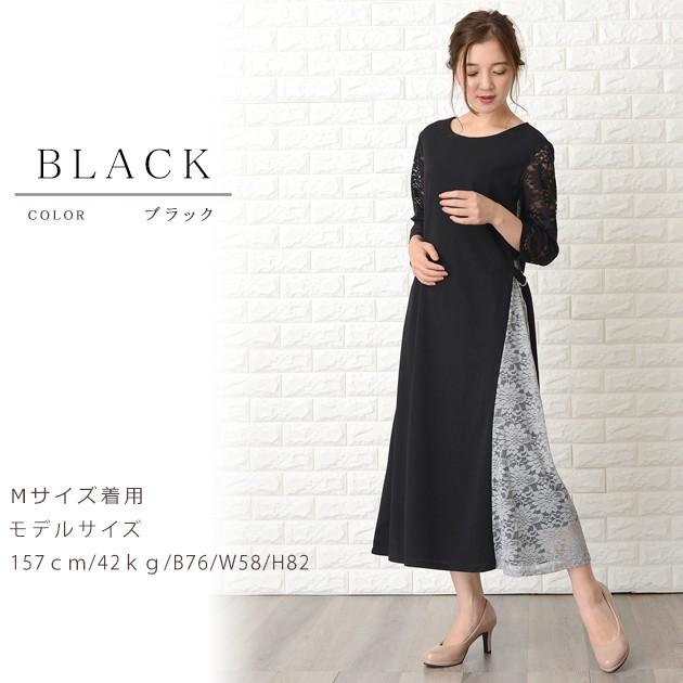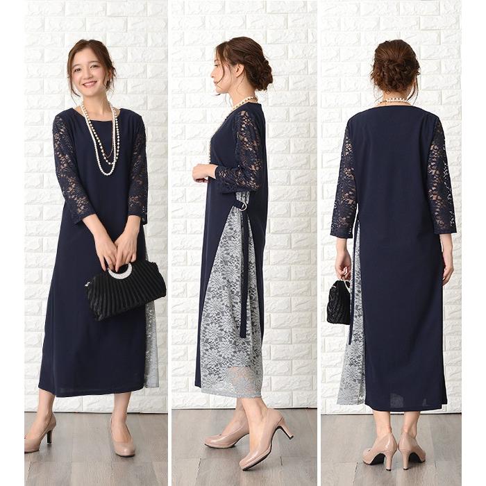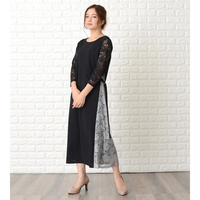 Lace Ladies パーティードレス ワンピース ロング丈 8分袖 レース袖 サイドレース フォーマル 結婚式 入園式 卒園式 二次会