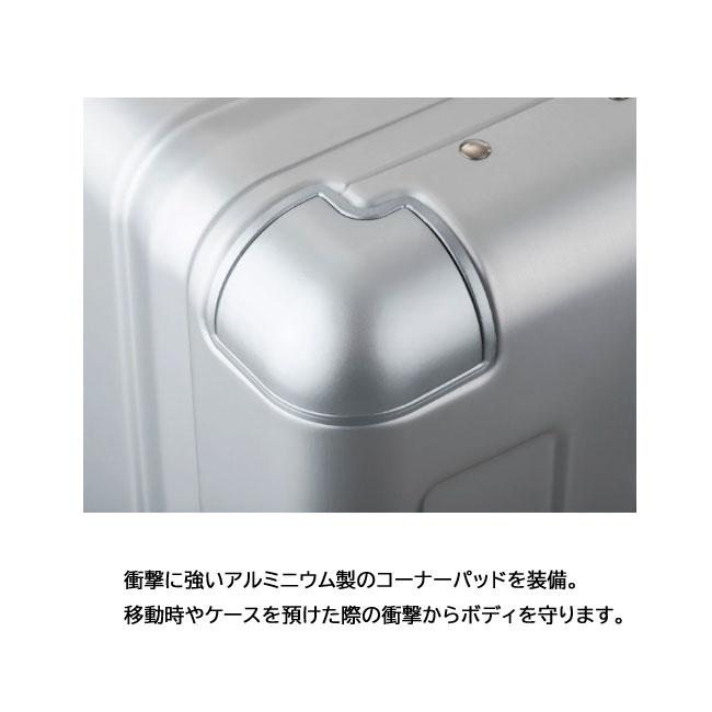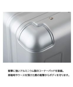 衝撃に強いアルミ製のコーナーパッドが付いており、