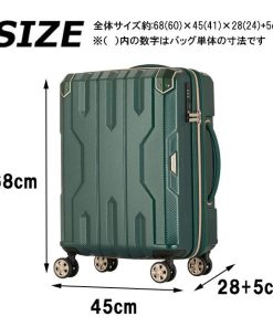 ケース横の台座にフック機能が付いているのでちょっとした荷物などを掛けることができます(耐荷重は2kg)スムーズな移動を可能にするダブルキャスター(合計8輪)、衝撃に強いコーナーパッド付きで、移動時の衝撃からボディを守ります。ダブルファスナーで容量アップ。ファスナー操作でマチ幅が約5cmアップします。鍵にはTSロックを採用。身長やシチュエーションに合わせて高さが調整できる段階調整キャリー。