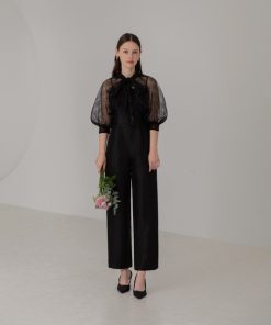 Leja パンツドレス 「LEJA」ドット柄スパンコールパフスリーブボレロオールインワンドレス 2点セット美脚効果 結婚式 パーティードレス 成人式 二次会 同