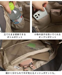 メッシュポケットやボトルポケットなど、内側・外側合わせて合計10個のポケット付きが付いて