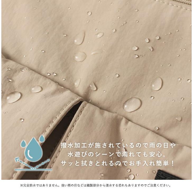 撥水ナイロン生地を使用しているので急な雨の日でもサッとひと拭きでお手入れも簡単です。