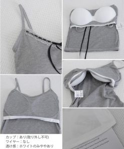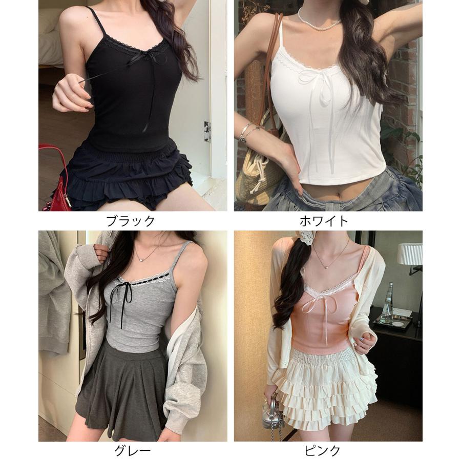 レディース フロントリボンリブキャミ 着回し肌着 フィット ブラトップ おしゃれインナートップス フェミニン ブラキャミ
