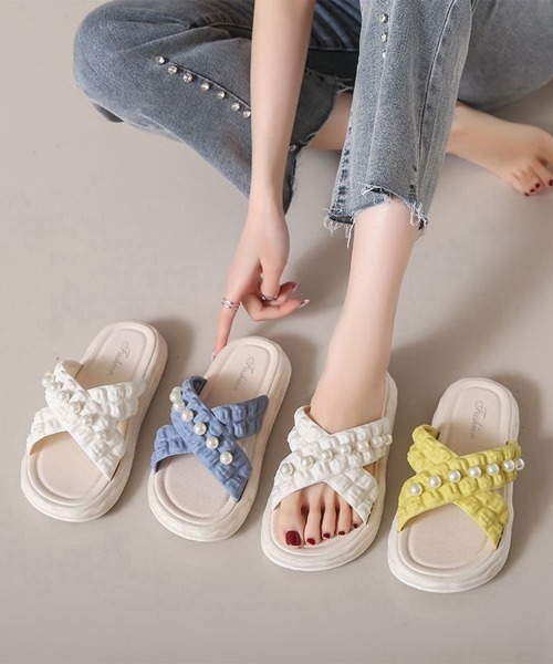キーワード:サンダル レディース スリッパサンダル ローヒール 軽量 厚底