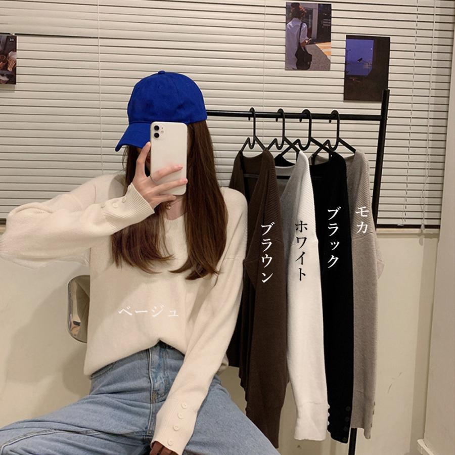 韓国 リブニットセーター秋冬 プルオーバーニット無地 シンプルニットソーお洒落 チクチクしない ボタン飾り ニット暖かい