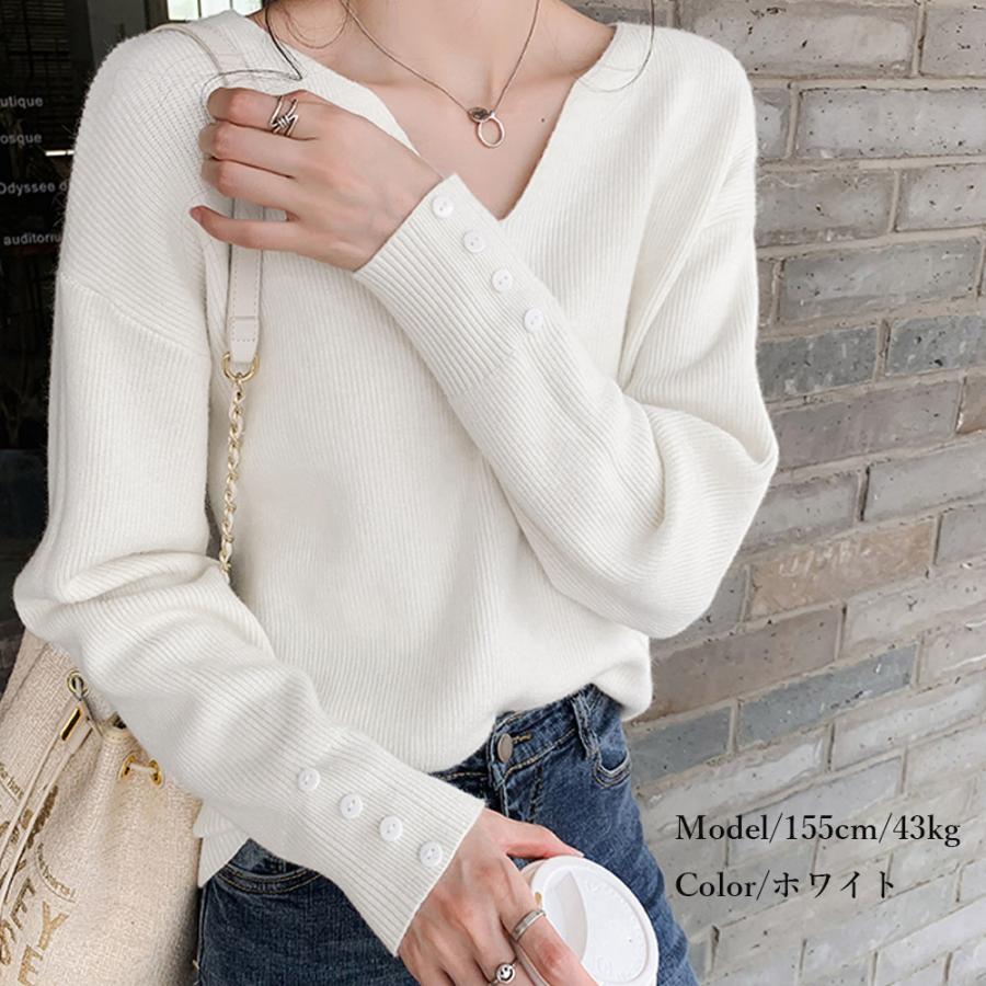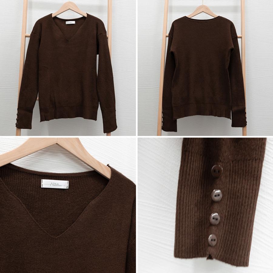 miniministore ニットトップス レディース Vネック 長袖 ニットセーター 無地 ボタン飾り プルオーバー シンプルニット 秋冬 きれいめ【ゆうパケット可】