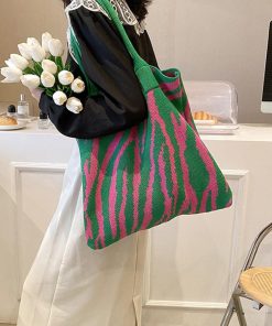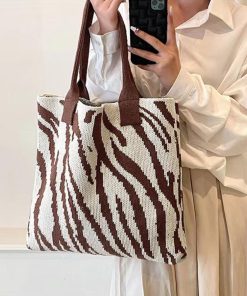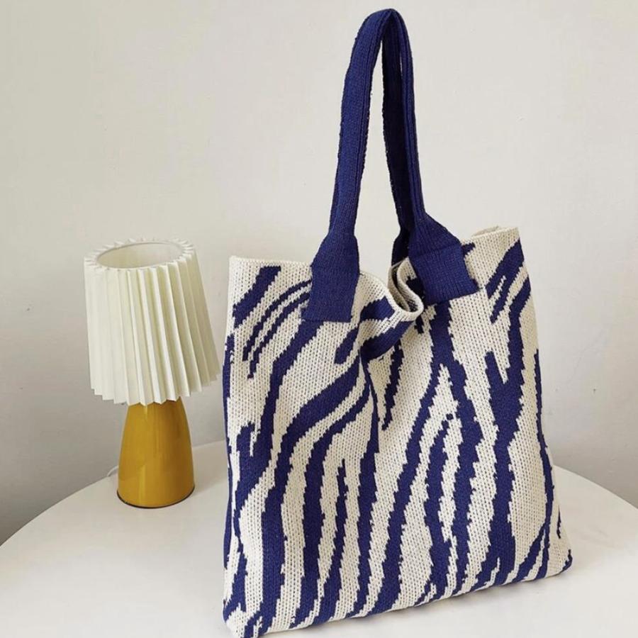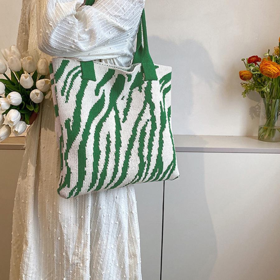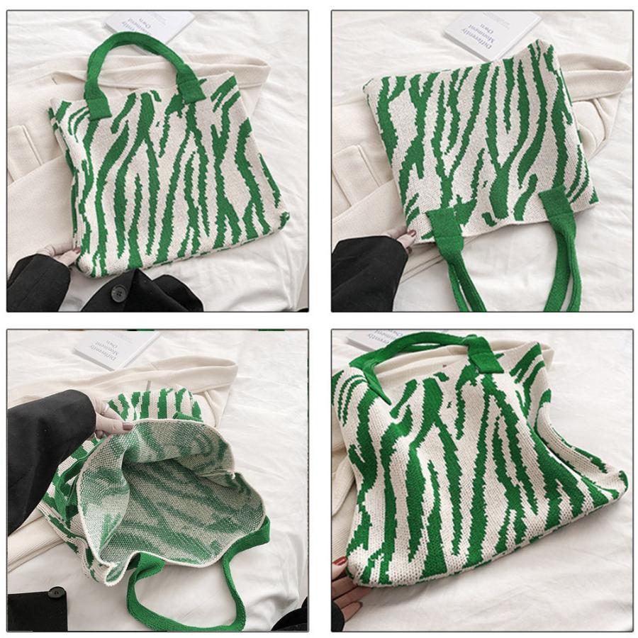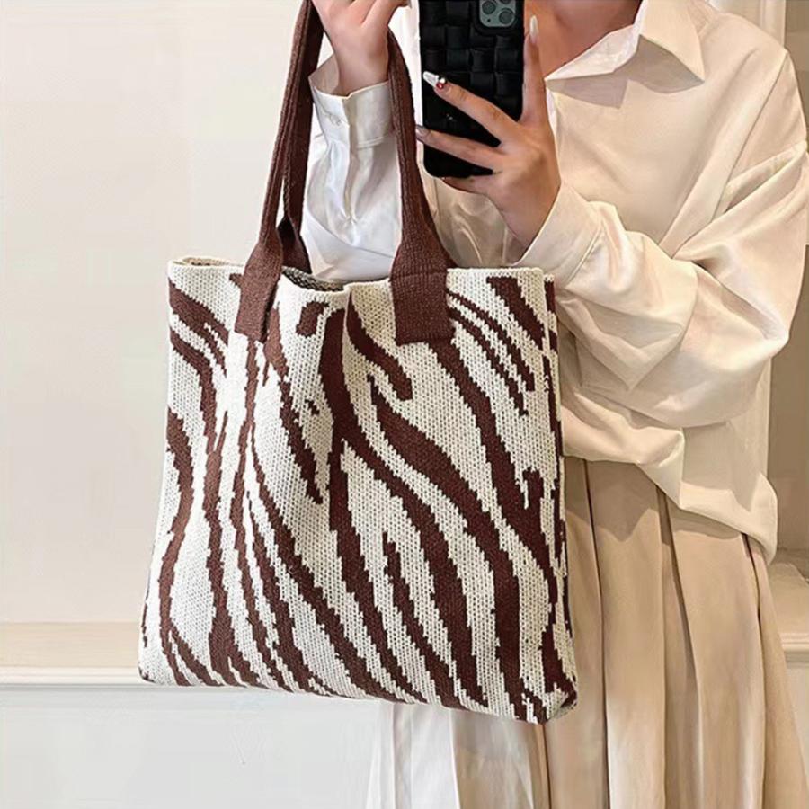 レディース 大人可愛い 肩掛けバッグ a4サイズニット編みバッグ バイカラー カジュアル アニマル柄鞄 韓国ファッション