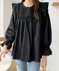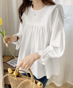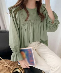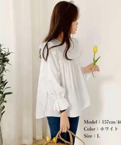 キャンディスリーブ シャツブラウス 春秋夏 長袖トップス きれいめ タックブラウス オフィスカジュアル 韓国ファッション