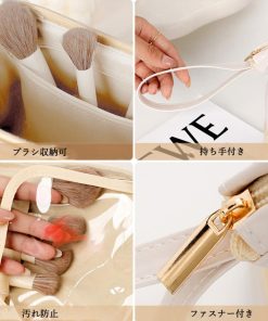 嵩張るブラシやマスカラなど細長い物を収納するポケットは蓋カバーまで付いていて、便利だけでなくメイク道具の清潔も保てる優れモノ