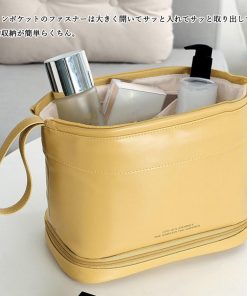仕切り付き&大容量で使い勝手抜群、化粧ポーチとしてもトラベルポーチとしても使えるシンプルコンパクトバッグ