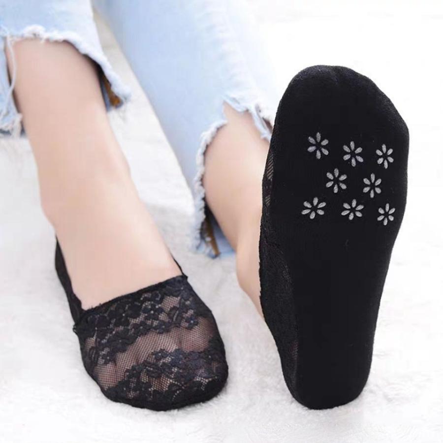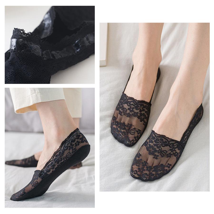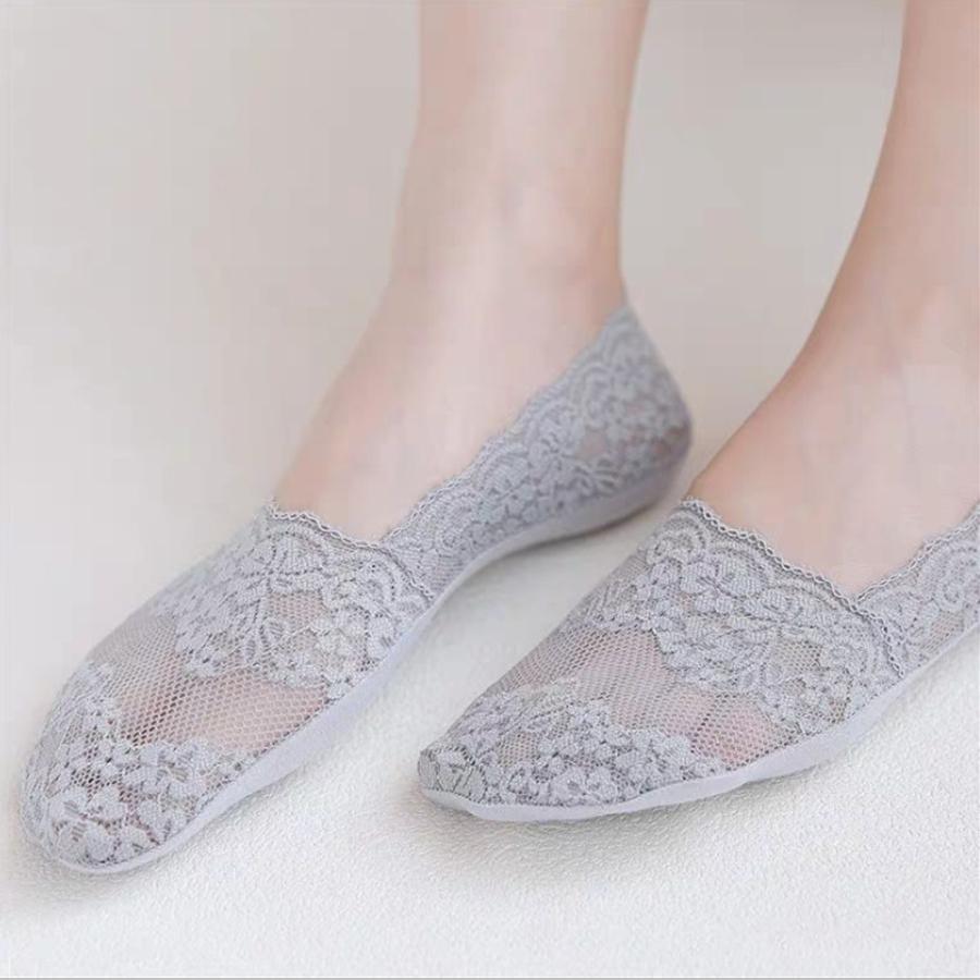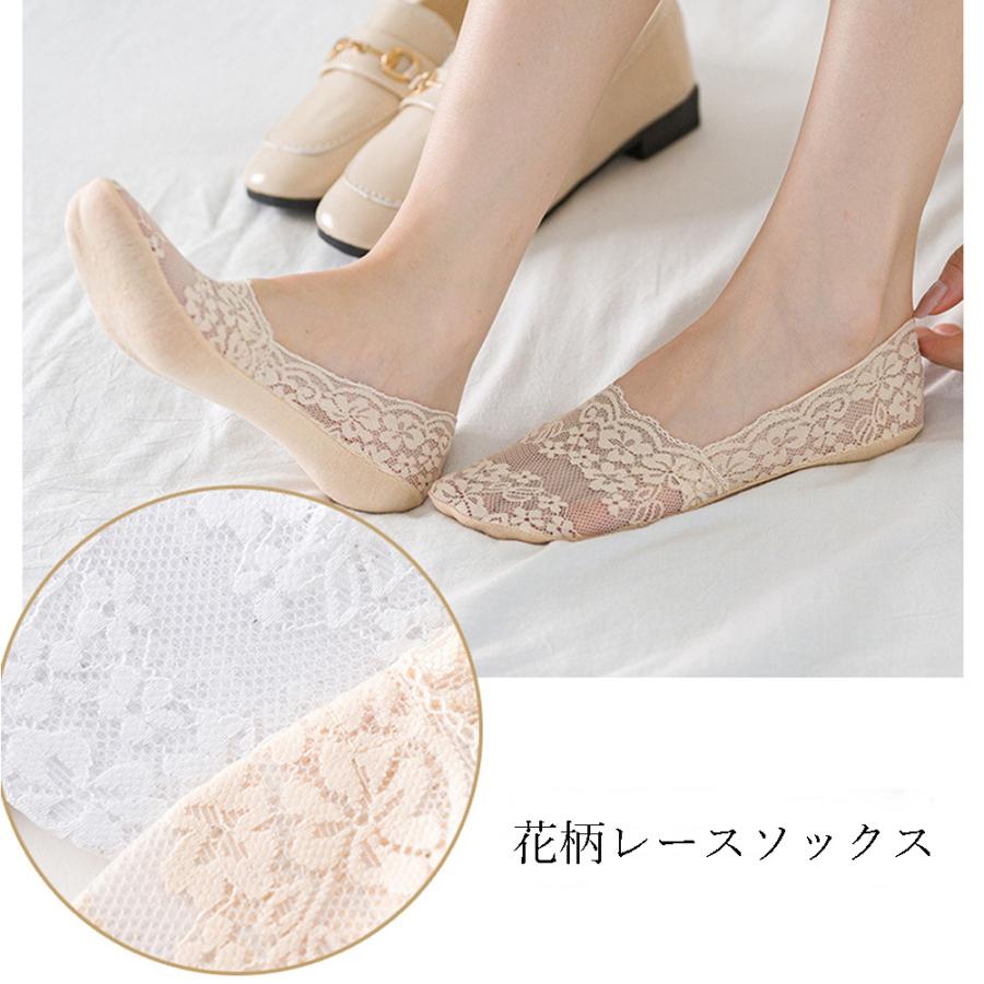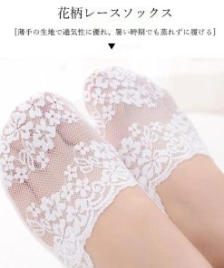 足の甲まで優しく包む、上品な花柄レースタイプのフットカバー