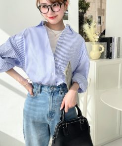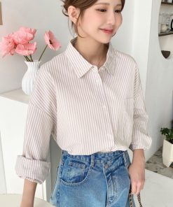 キーワード:ブラウス シャツ レディース コットン ストライプ チェック ライン レギュラーカラー 長袖 無地 WEB限定 ドライブ プチプラ フレンチカジュアル 夏 公園 春 定番 旅行