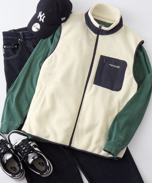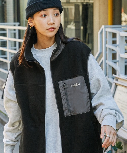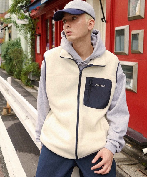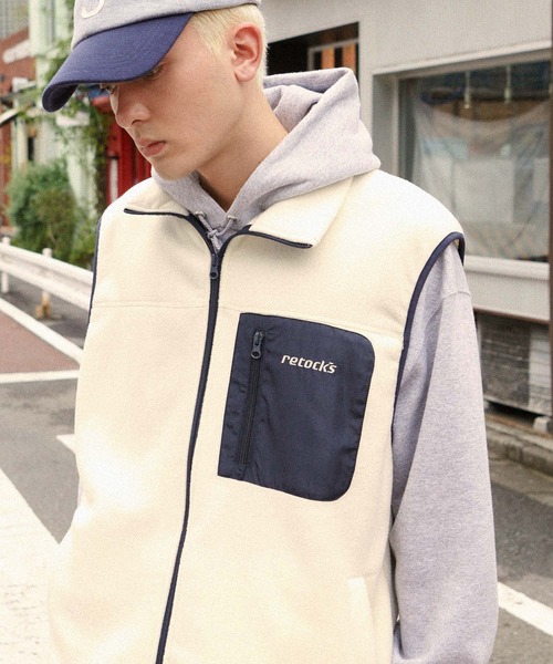 参考商品名:【retock’s】ロゴ刺繍 スタンドボアフリースジップベスト