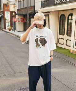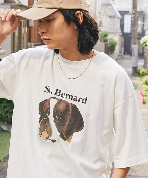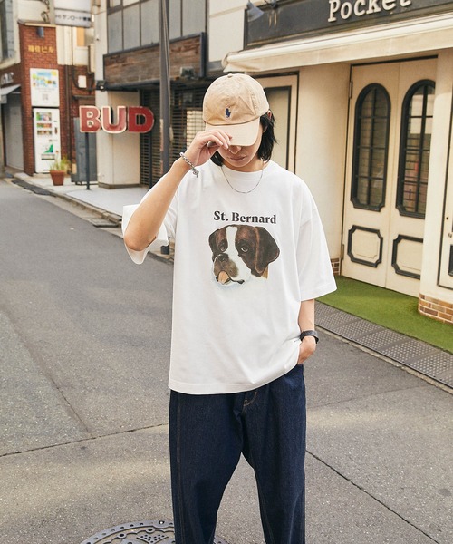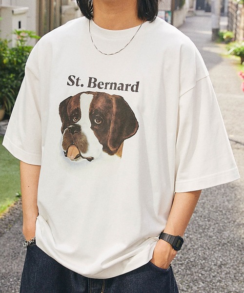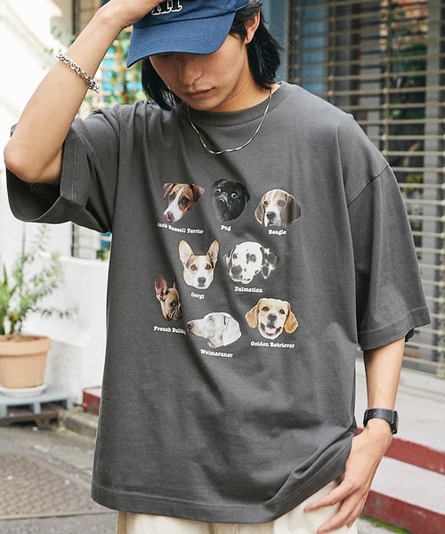 参考商品名:ドッグ レトロプリント ビッグシルエット半袖Tシャツ