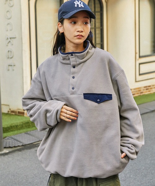 参考商品名:【retock’s】フリースハーフボタン ビッグシルエットスナッププルオーバー