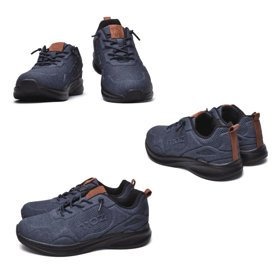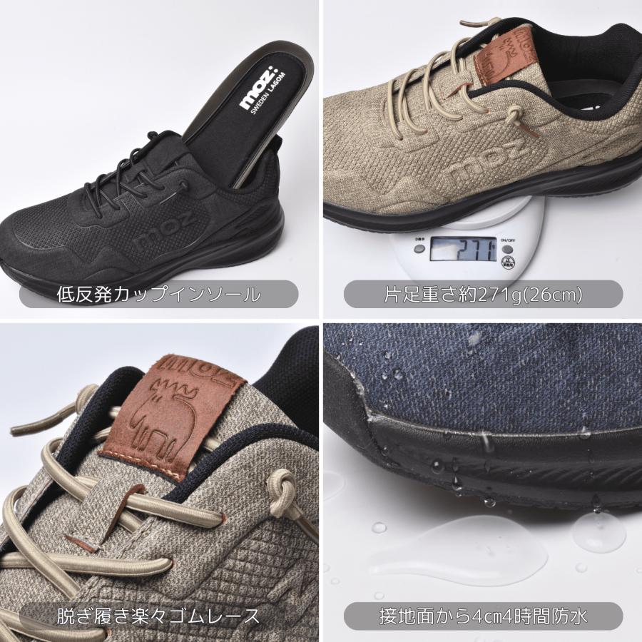 moz メンズ スニーカー 軽量 クッションインソール 防水 ゴムレース 高周波 モズ 靴 黒 ネイビー ベージュ 4273
