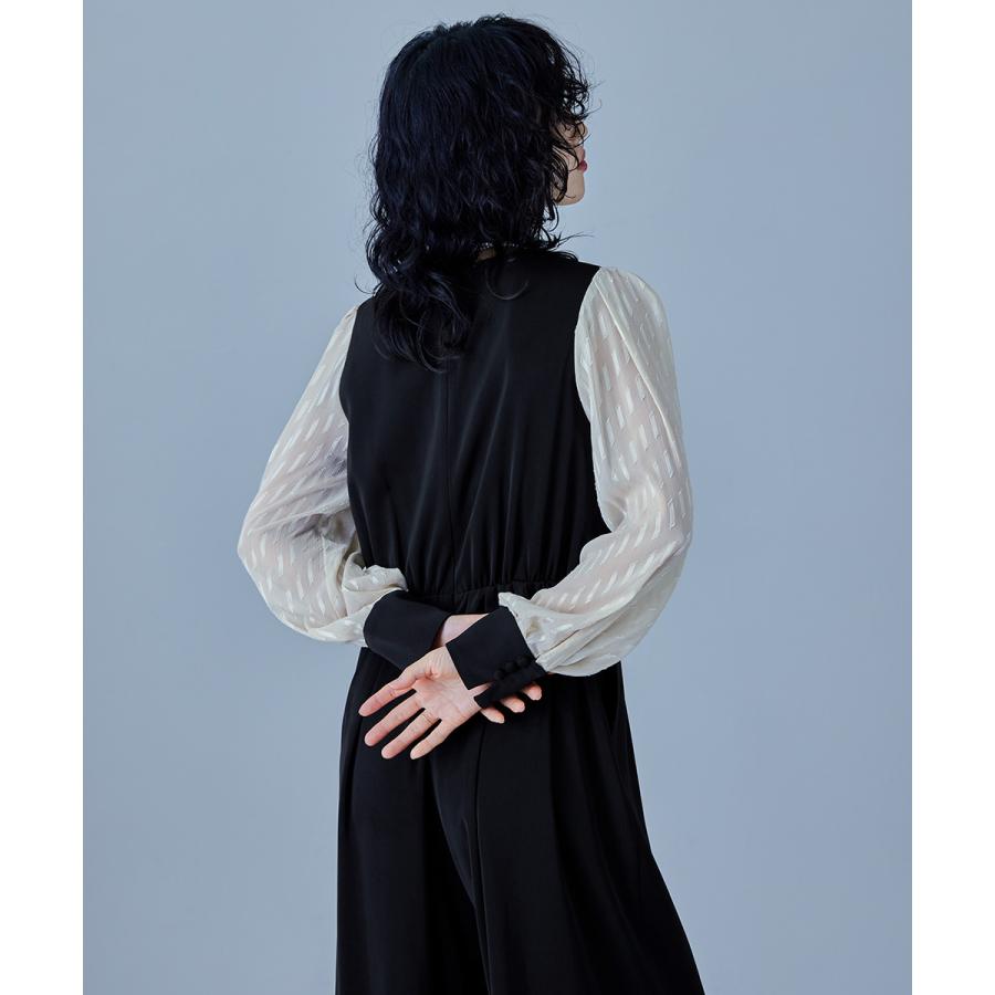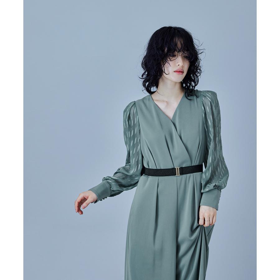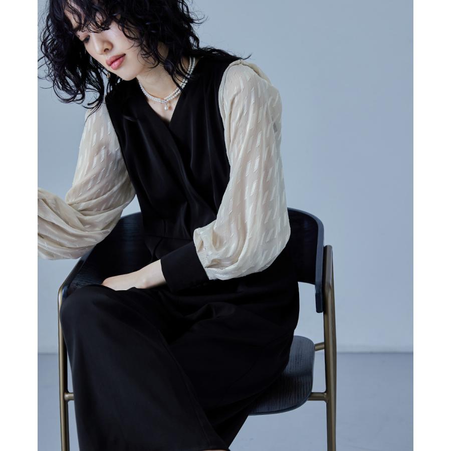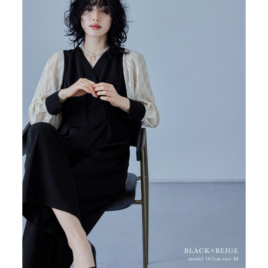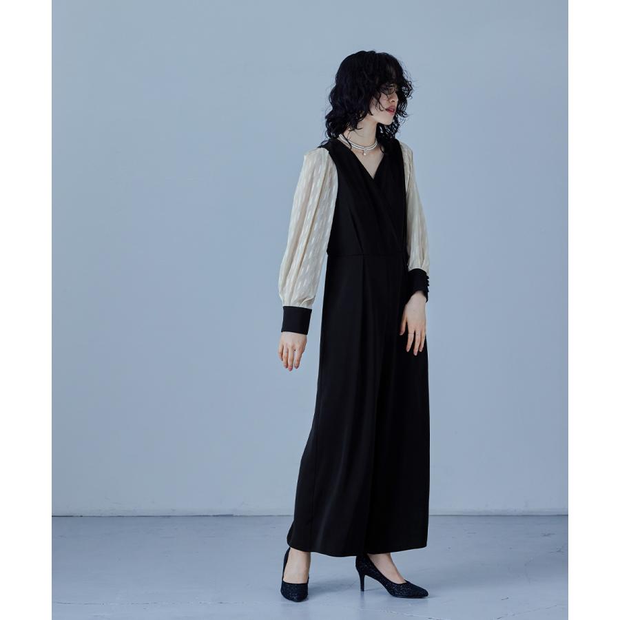 【商品名】カシュクールデザインパンツドレス パーティードレス 結婚式 オールインワン ワイドパンツ Vネック 切り替え ジャガード ドット お呼ばれ パーティー 二次会