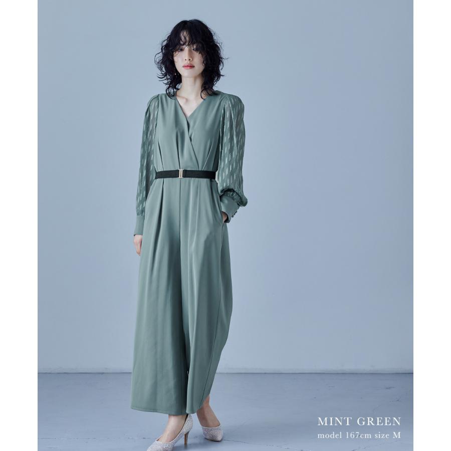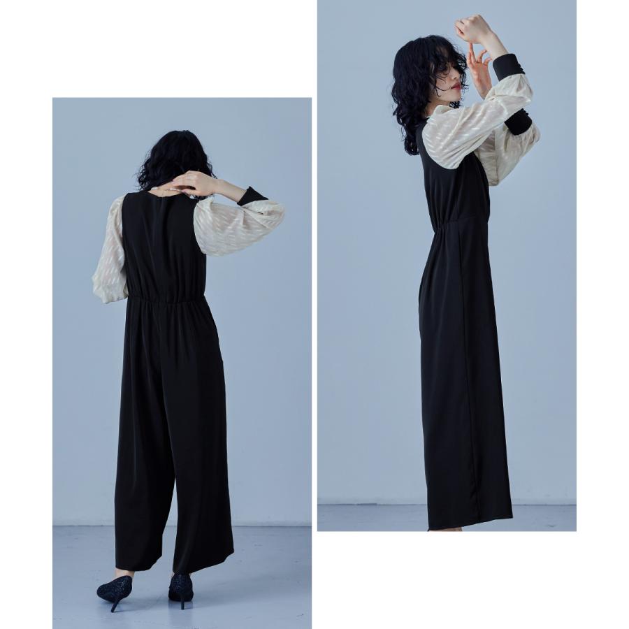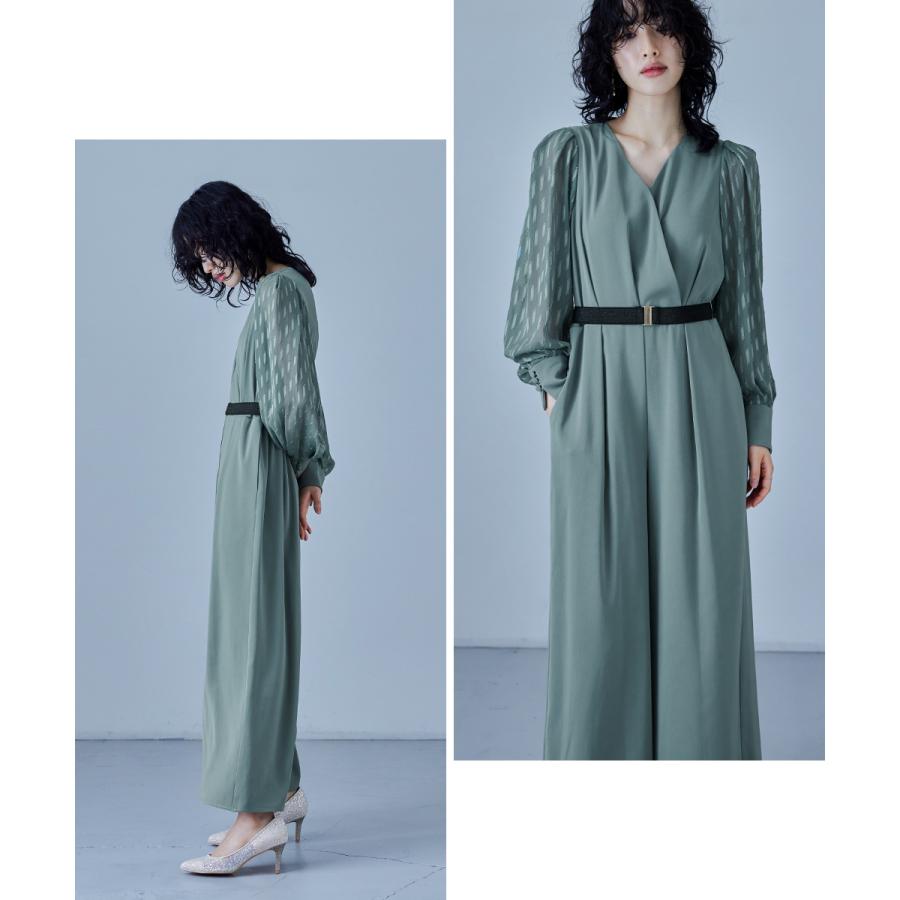 niana カシュクールデザインパンツドレス パーティードレス 結婚式 オールインワン ワイドパンツ Vネック 切り替え