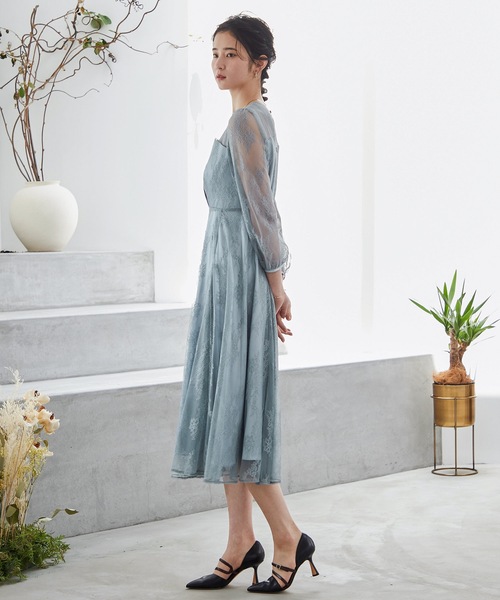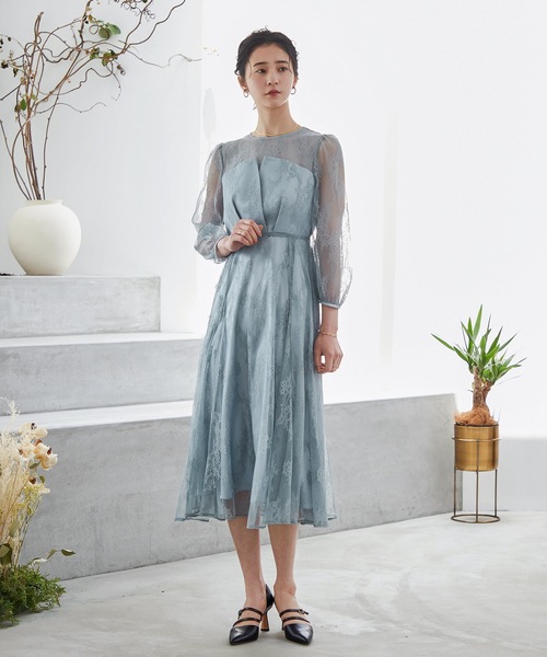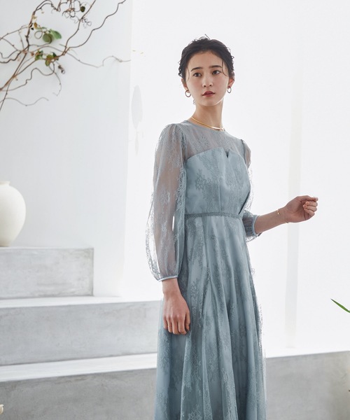 キーワード:ドレス フレア レース ロング 長袖 結婚式二次会