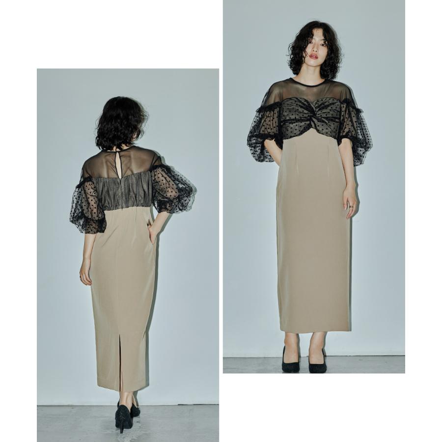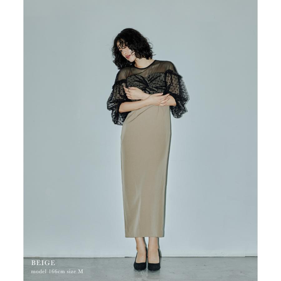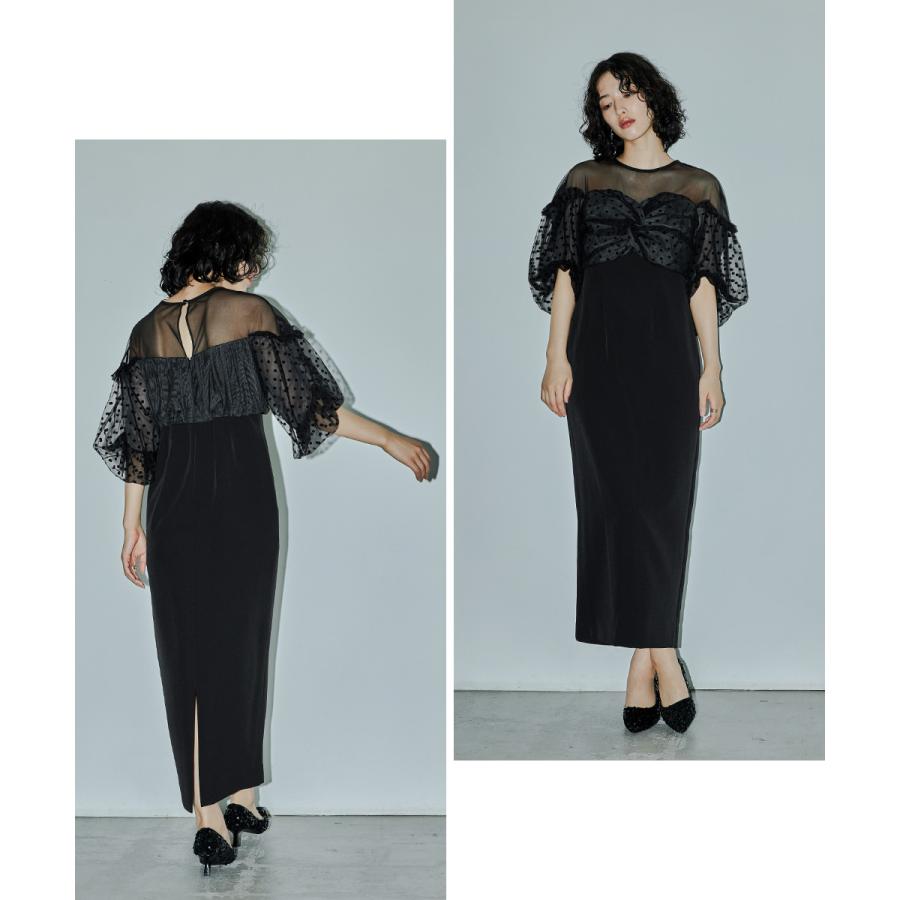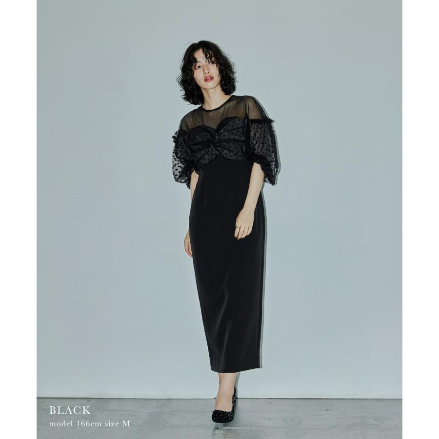 niana フロッキードットワンピース パーティードレス 結婚式 チュール 水玉 ビスチェ Iライン タイト パフスリーブ