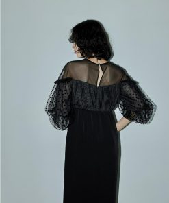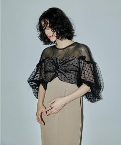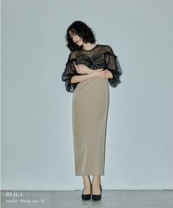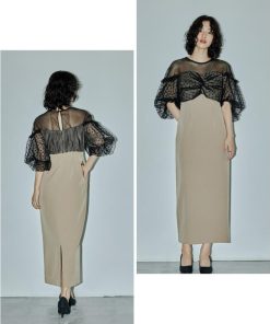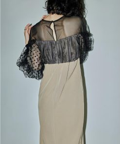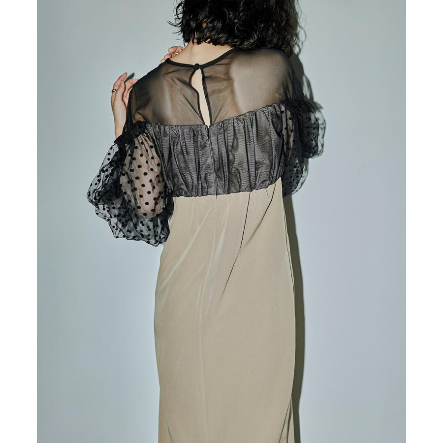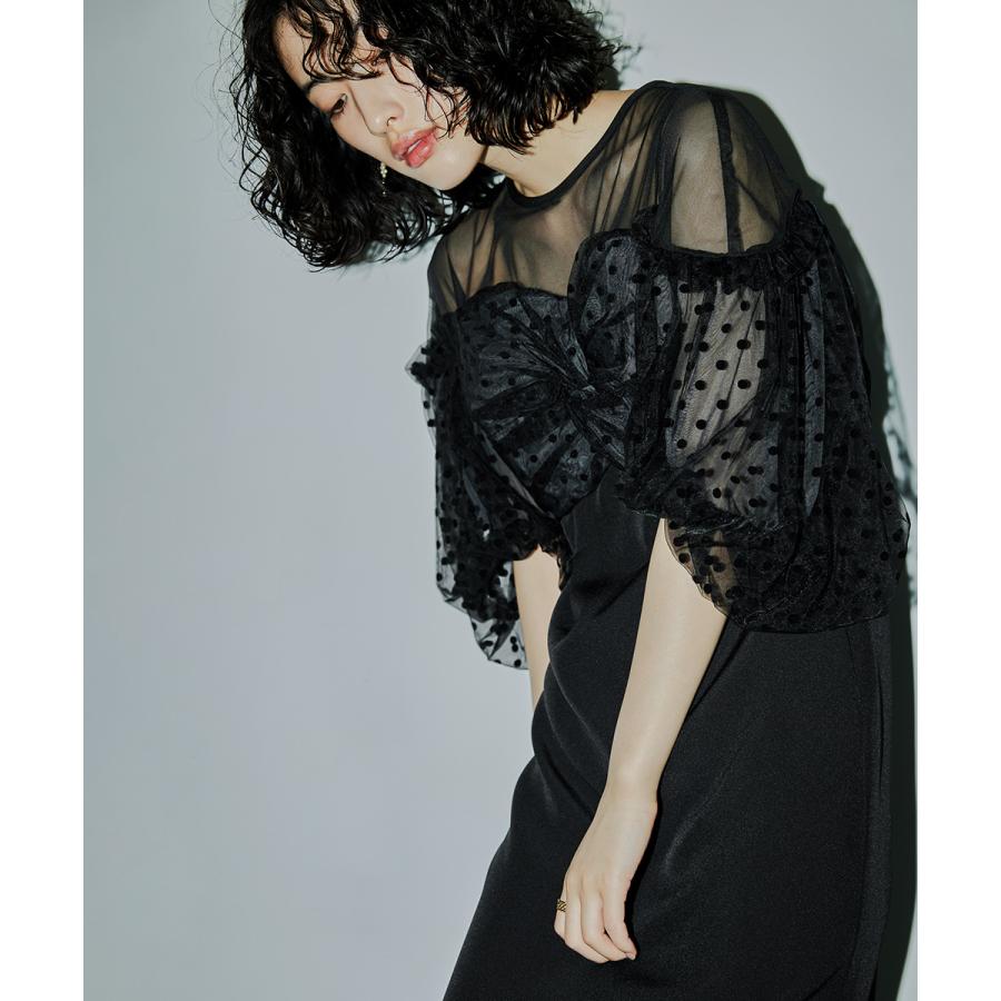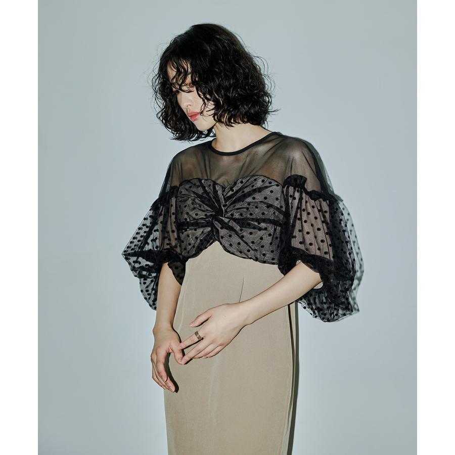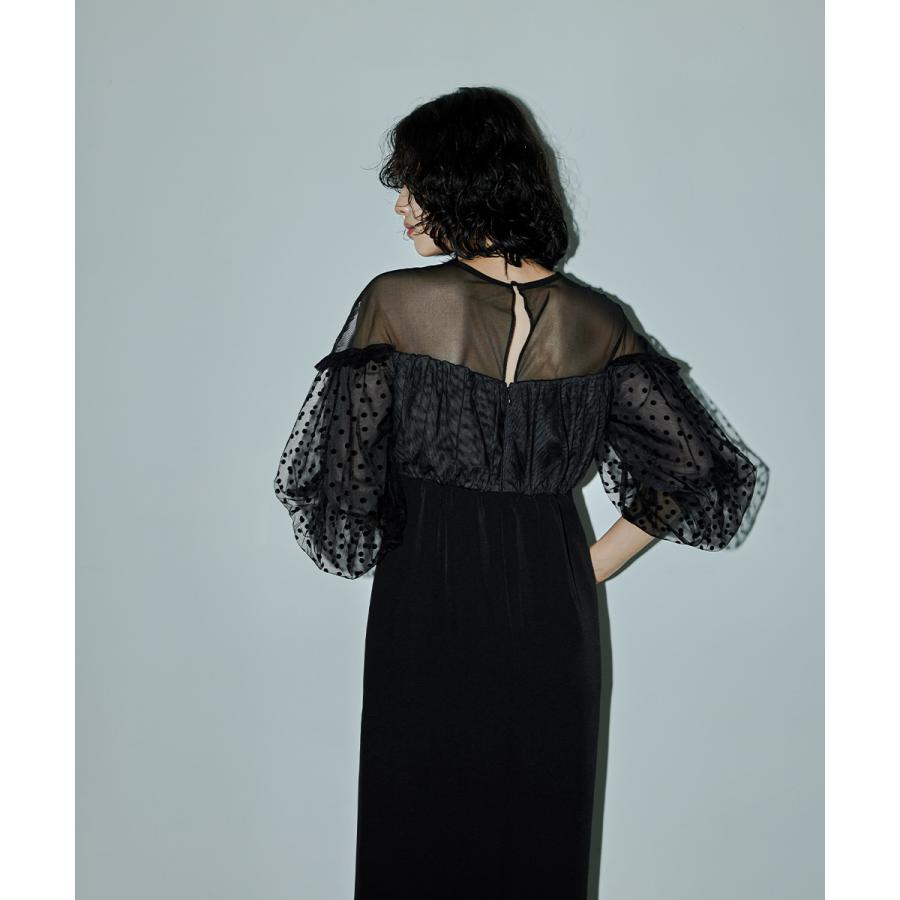 niana フロッキードットワンピース パーティードレス 結婚式 チュール 水玉 ビスチェ Iライン タイト パフスリーブ