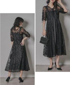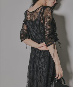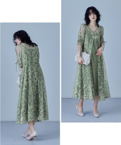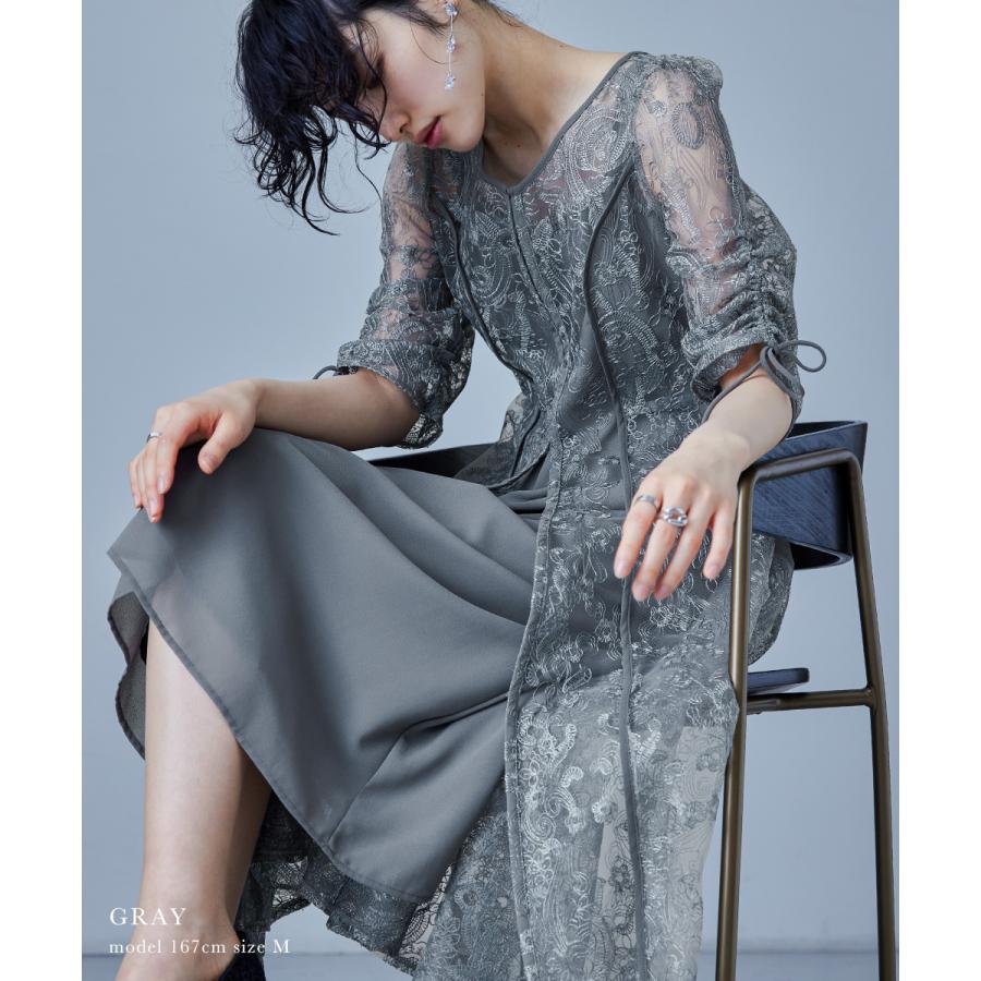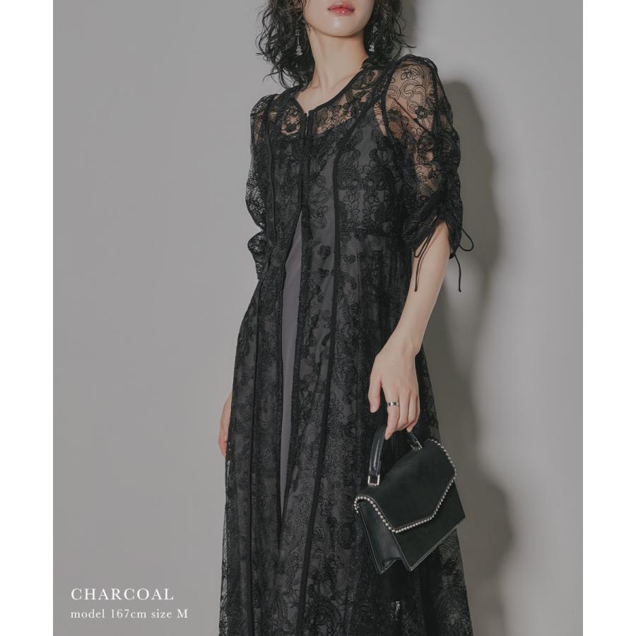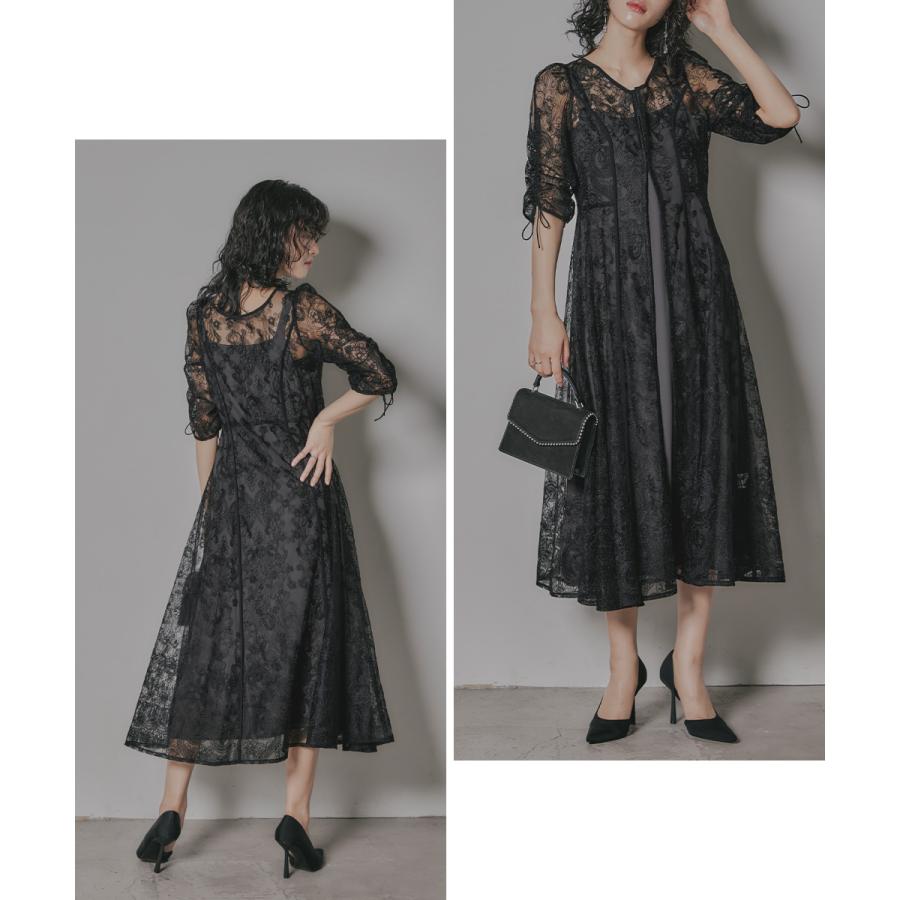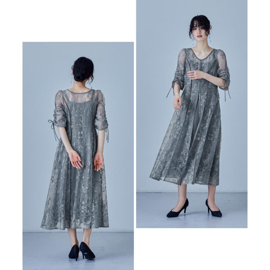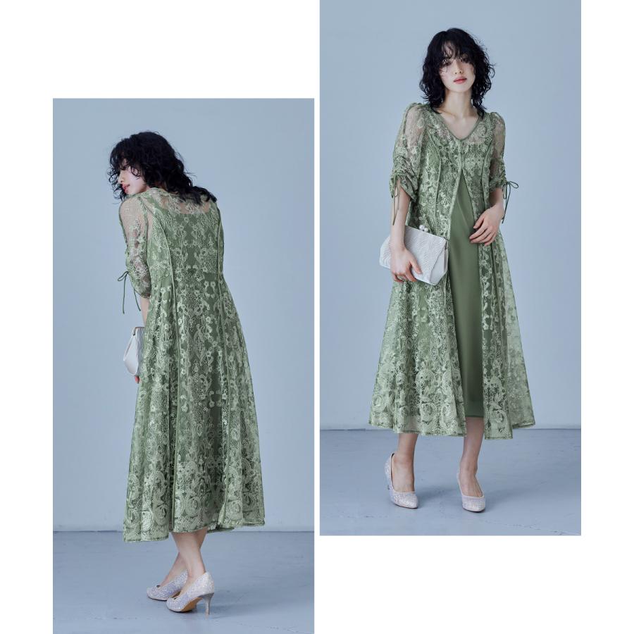 niana 刺繍レースロングカーデキャミワンピセットドレス 結婚式 ワンピース パーティードレス レイヤード