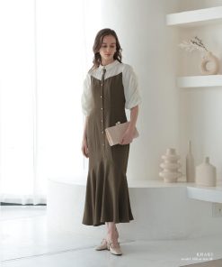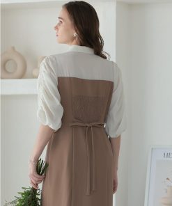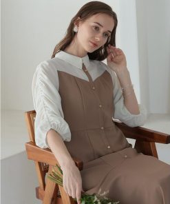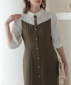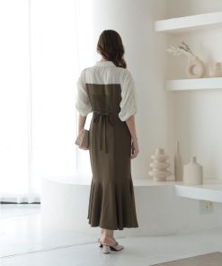 niana 結婚式 ワンピース パーティードレス レイヤード ブラウス ドッキング ボリューム袖 マーメイドスカート フレア ロング丈 五分袖 七分袖 春夏 秋冬
