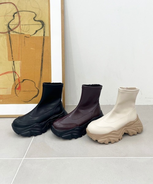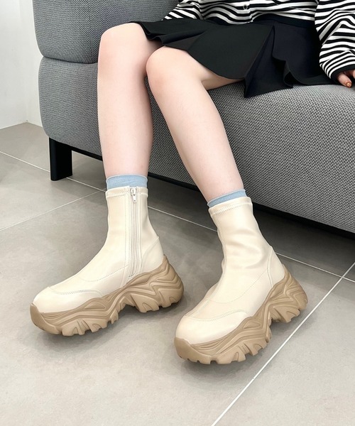 商品名:軽量 厚底 スニーカーソール ショートブーツ 41412