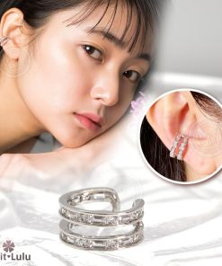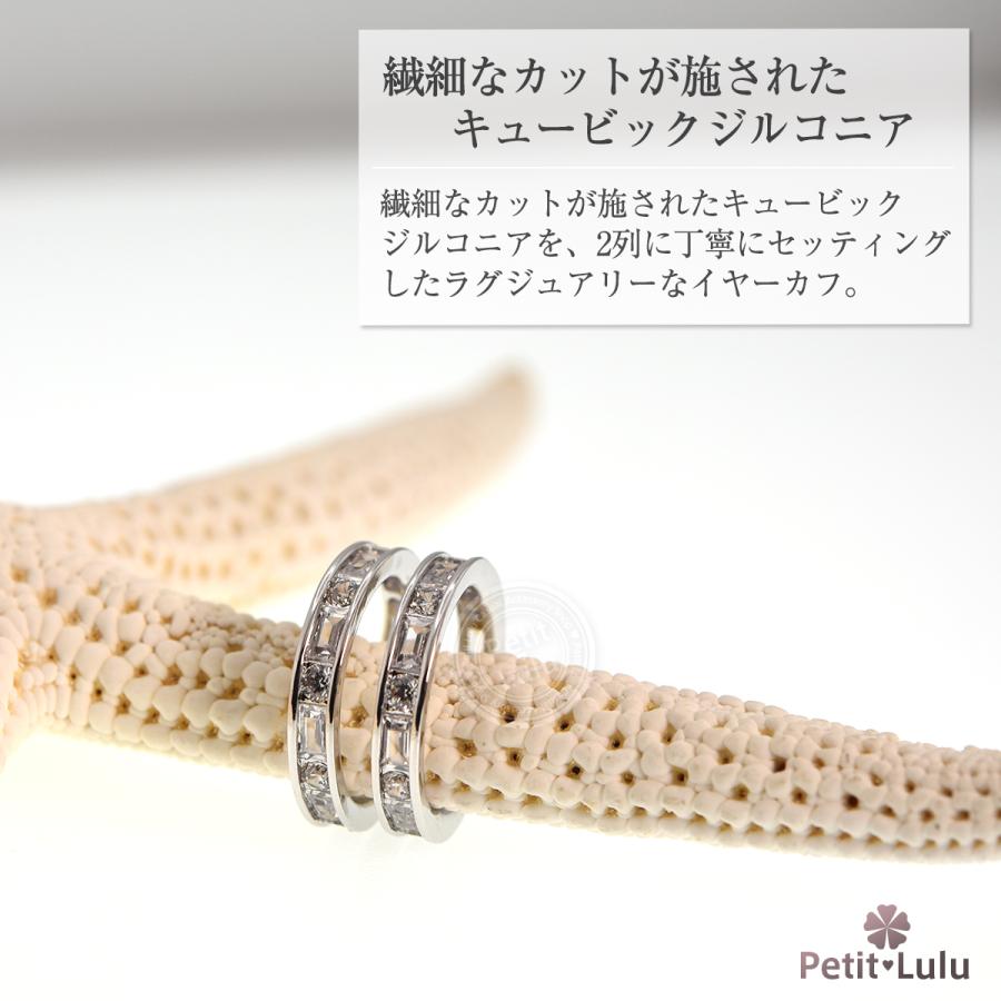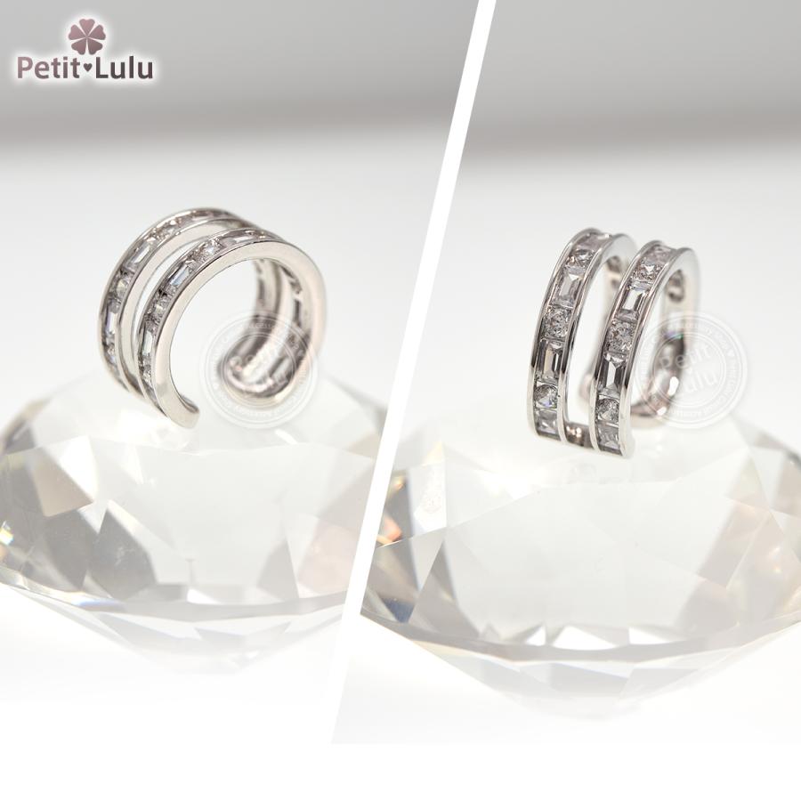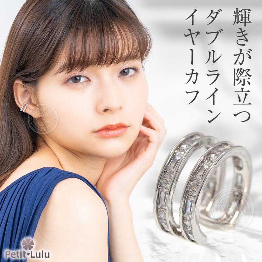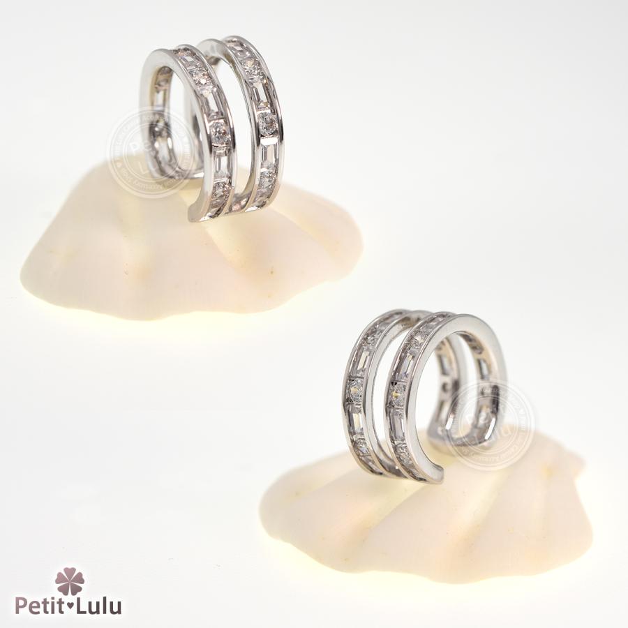Petit Lulu 新作 イヤーカフ レディース アレルギー対応 ダイヤモンドCZ 18k 18金 イヤリング イヤカフ ノンホール ダブルライン 誕生日 プレゼント