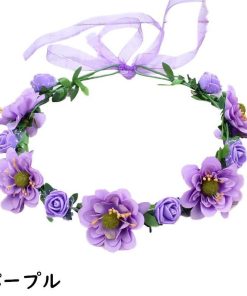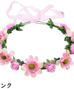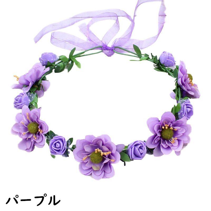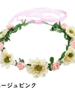 plusnao ヘッドコサージュ 花冠 花かんむり ヘッドドレス 髪飾り レディース 女性 ヘアアクセサリー フラワーティアラ ブライダル ウエディング かわいい お