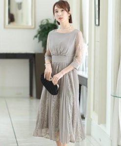PourVous プールヴー シアーカフスワンピースドレス大きいサイズ袖あり&ミモレ丈結婚式フォーマル ワンピース パーティードレス 20代 30代
