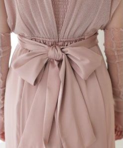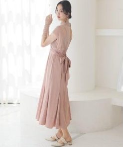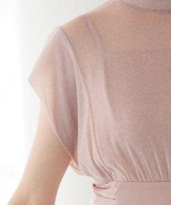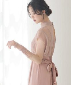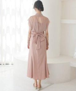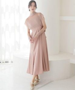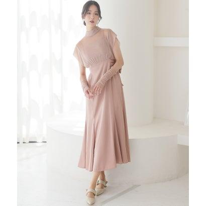 PourVous プールヴー ノースリーブ&ミモレ丈パーティードレスアームカバーお呼ばれ結婚式フォーマル ワンピース 20代 30代 40代 (ピンク