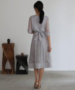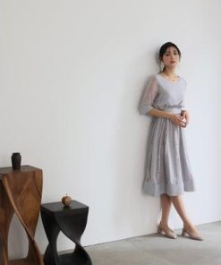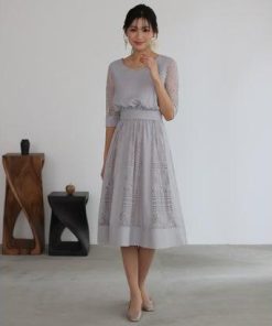 PourVous プールヴー フェミニンワンピースドレス大きいサイズミモレ丈&七分袖結婚式フォーマル ワンピース パーティードレス 20代 30代 4