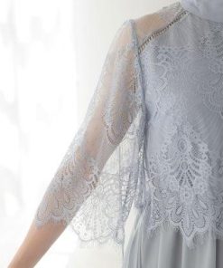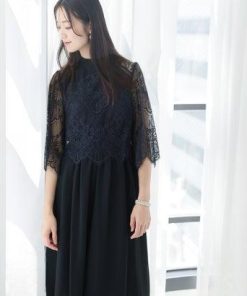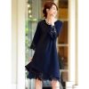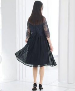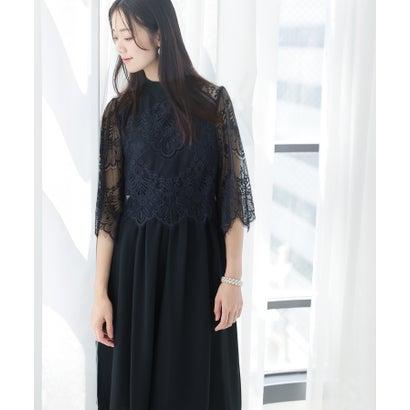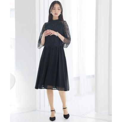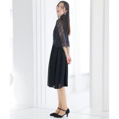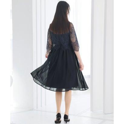 PourVous プールヴー ミニ丈&七分袖フォーマルエアリーシフォン結婚式ワンピースドレス パーティードレス 20代 30代 40代 (ネイビー)