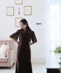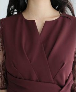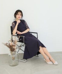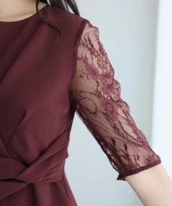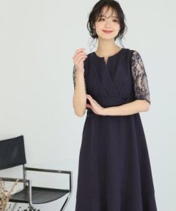 PourVous プールヴー 結婚式ワンピースドレスマーメイドレースミモレ丈&七分袖大きいサイズフォーマル パーティードレス 20代 30代 40代