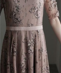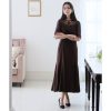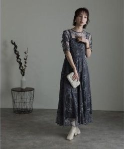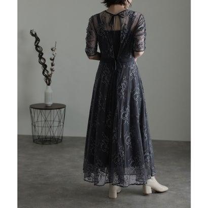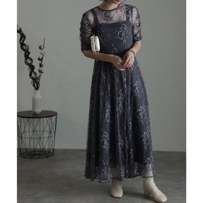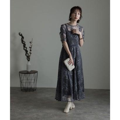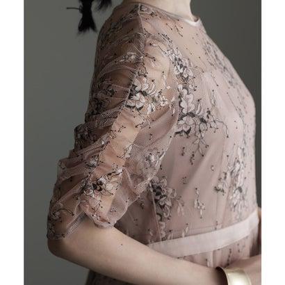 PourVous プールヴー 袖あり&ミモレ丈パーティードレスギャザースリーブ大きいサイズ結婚式フォーマル ワンピース 20代 30代 40代 (ダー