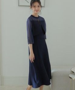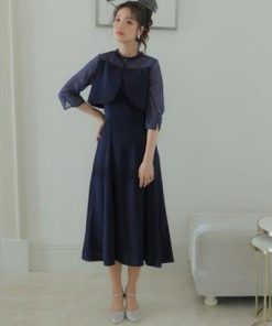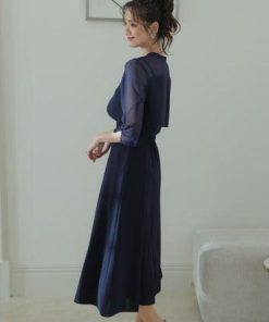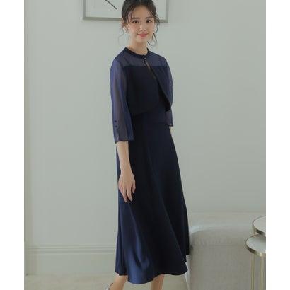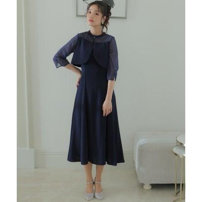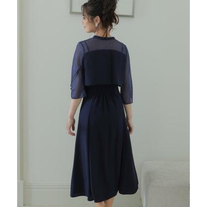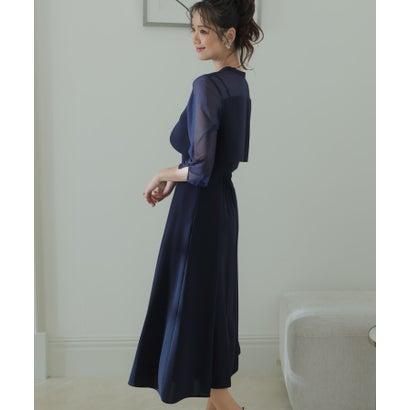 PourVous プールヴー 2Wayトップスパーティードレスお呼ばれミモレ丈&七分袖結婚式フォーマル ワンピース 20代 30代 40代 (ネイビー