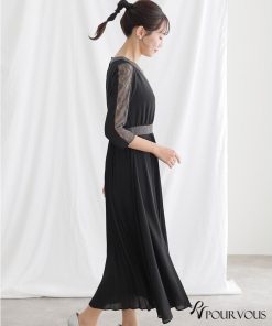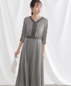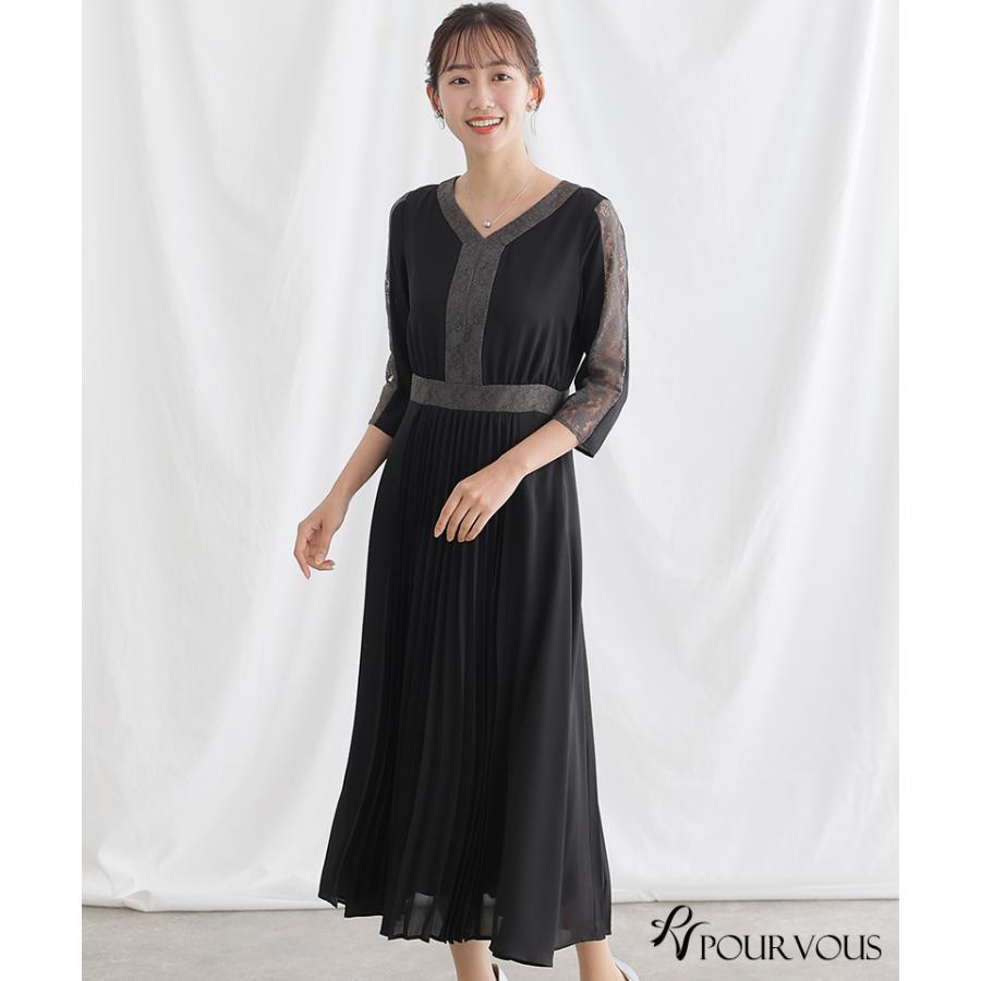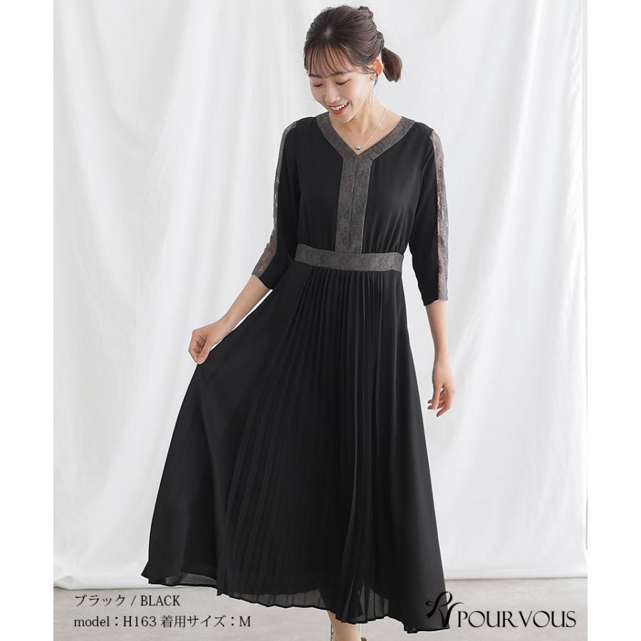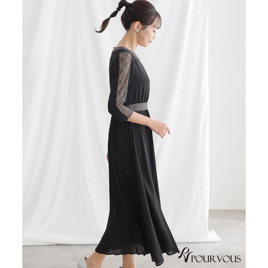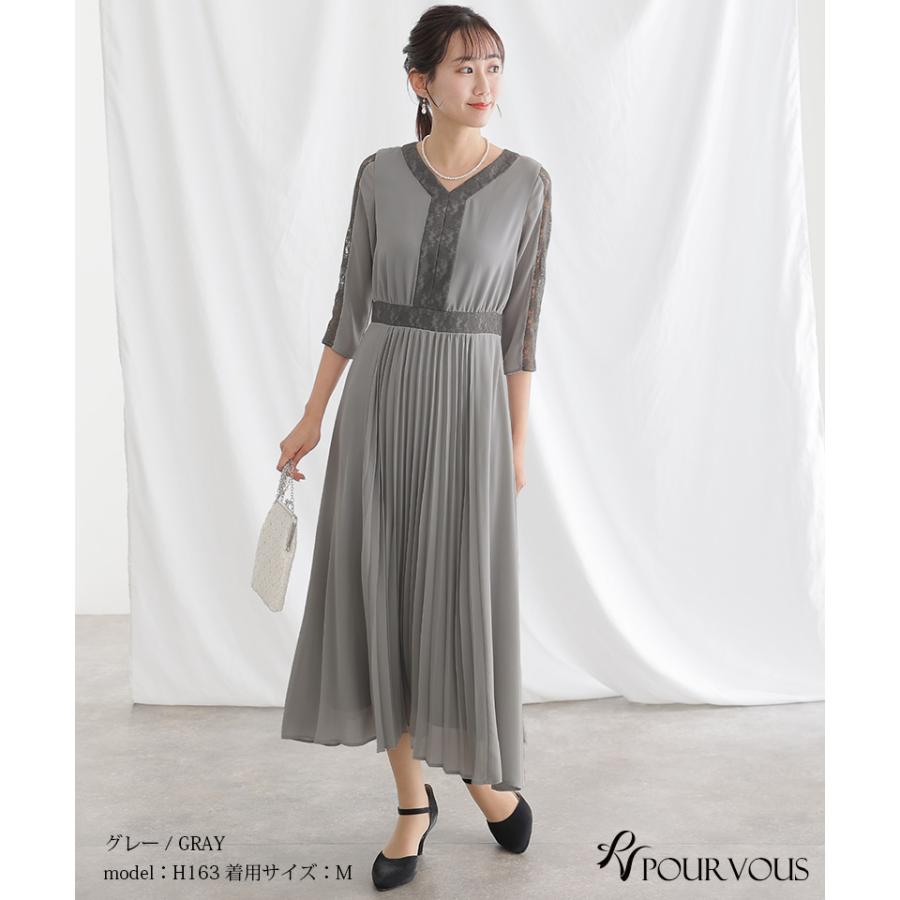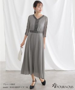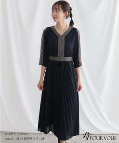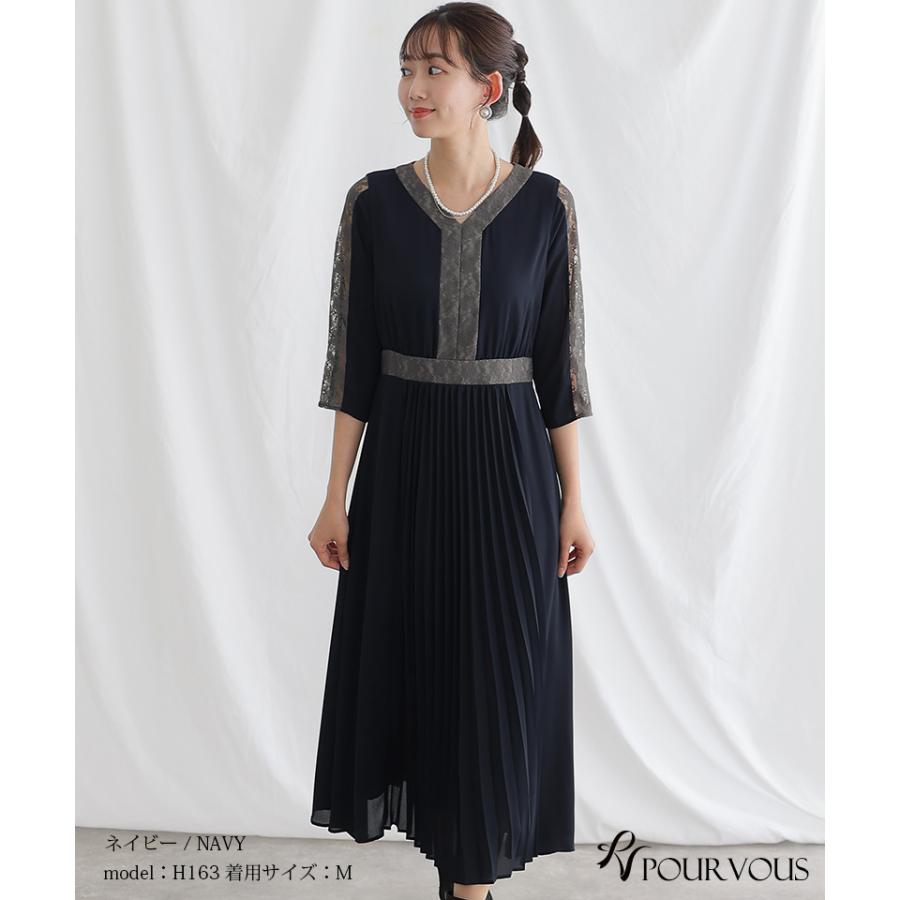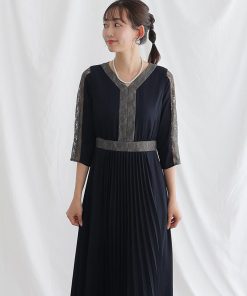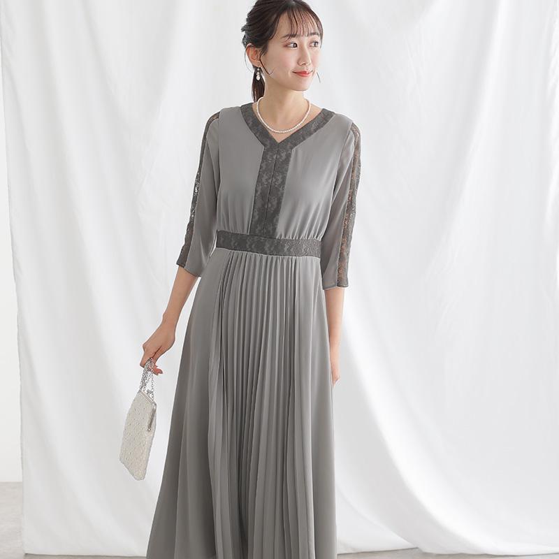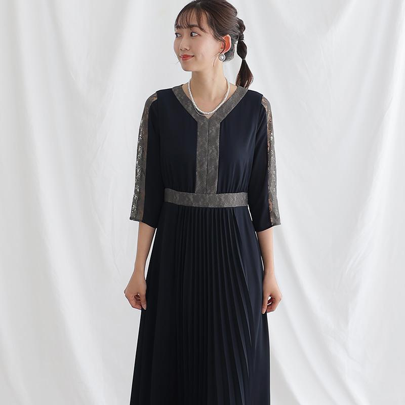 レース×プリーツ切替ワンピース【731231420】