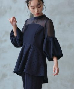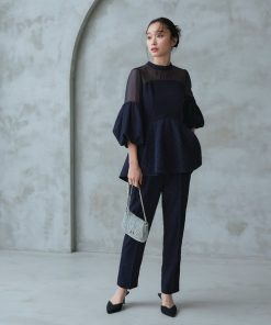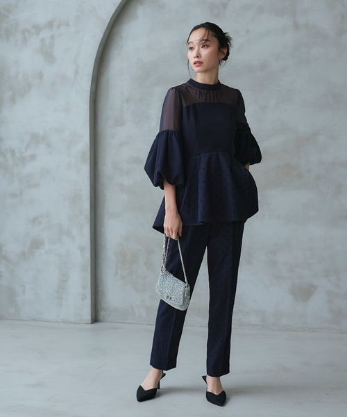 商品名:オケージョンドレス 結婚式 | ボリュームスリーブペプラムトップス& テーパードパンツ セットアップ | パーティードレス ワンピース ドレス フォーマル オケージョン お呼ばれ 美脚効果