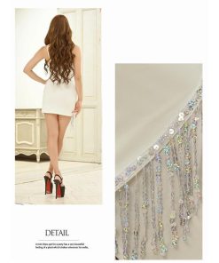 ☆ウエストから裾にかけてなびくフリンジデザインのスパンコールは歩くたびにキラキラ煌きキャバクラやラウンジで注目の視線を集めること間違いなしのナイトドレスです。