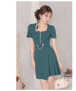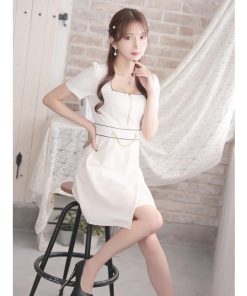 Ryuyu キャバ ドレス キャバドレス ミニドレス ミニ キャバクラドレス 韓国ドレス アシンメトリー ラウンジワンピース 袖付き 韓国風