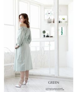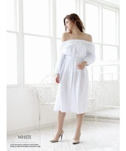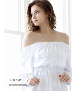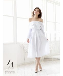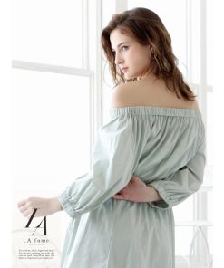 ☆LA風の洗練された大人スタイルを楽しめる長袖キャバワンピース。オフショルデザインで程よい色気を演出し、シャツワンピ風のシンプルな無地仕上げが魅力的です。
