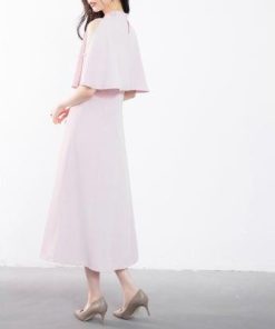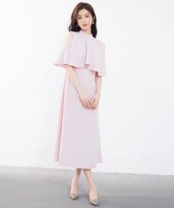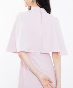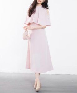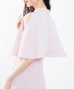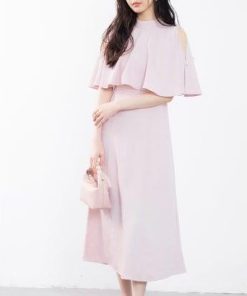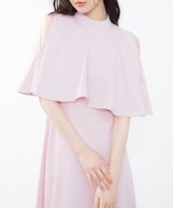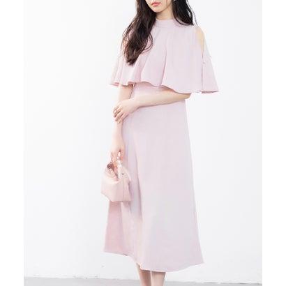 SAISON DE PAPILLON セゾンドパピヨン 立ち襟オープンショルダーミモレ丈ワンピース (ピンク)