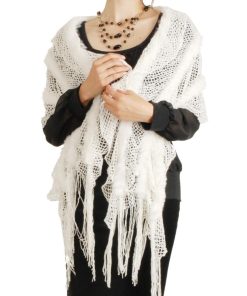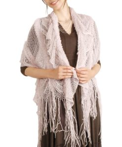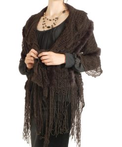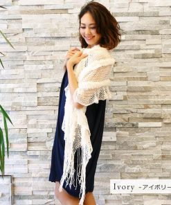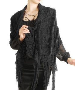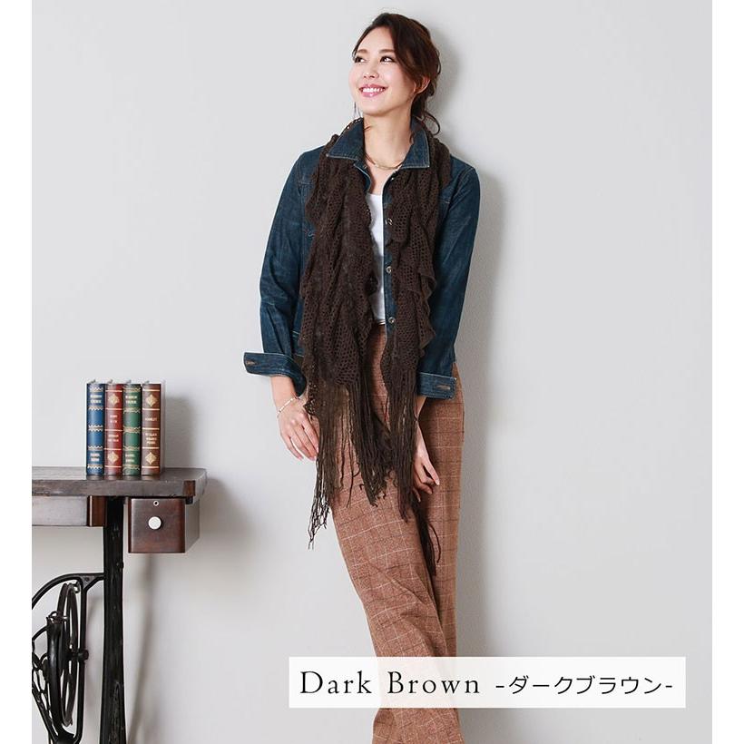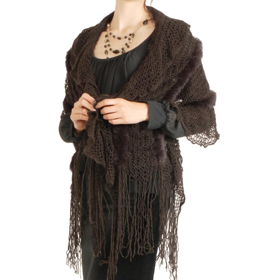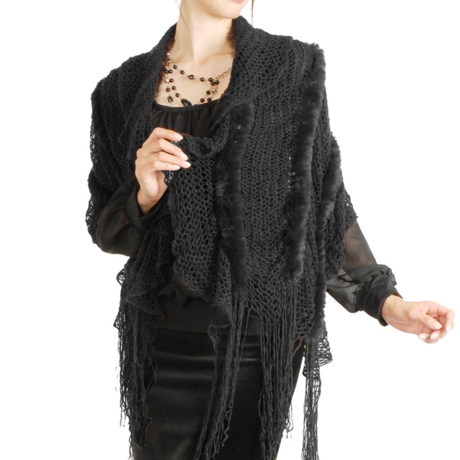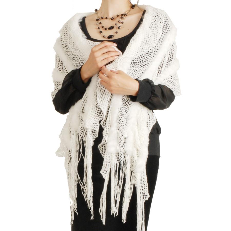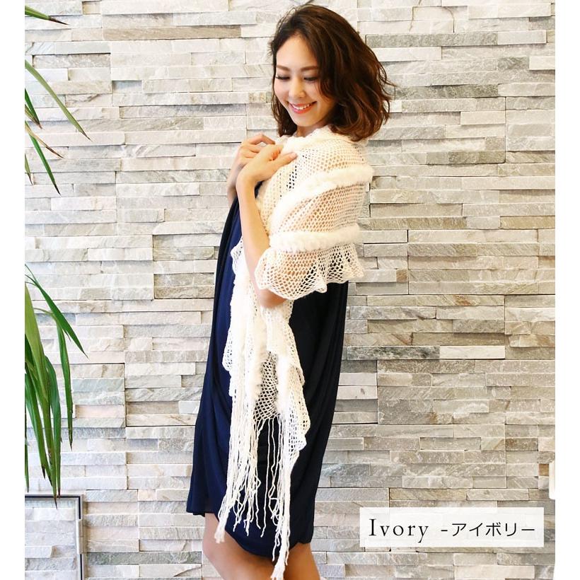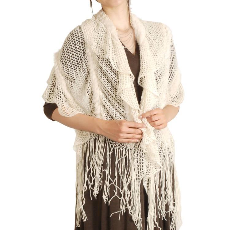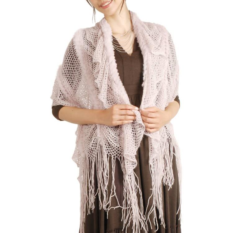 sankyo shokai フリル ストール フリンジ付き ラビットファー トリミング / レディース (No.8908)