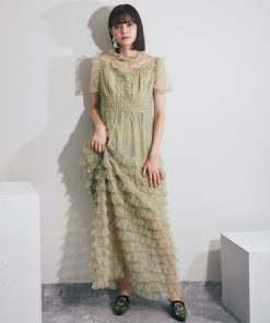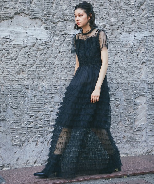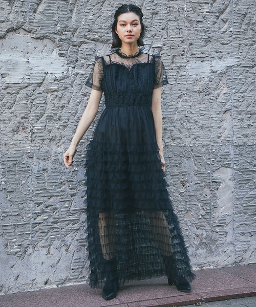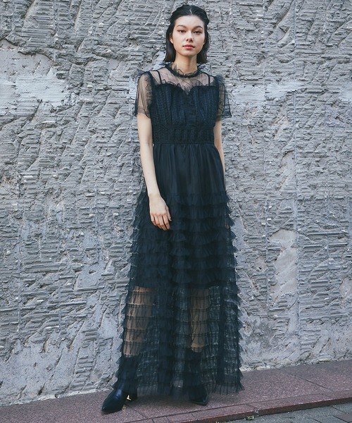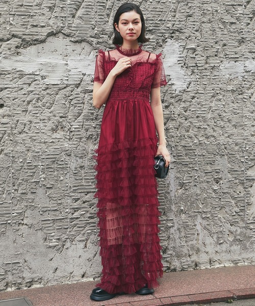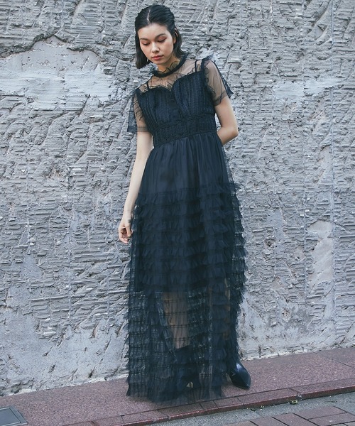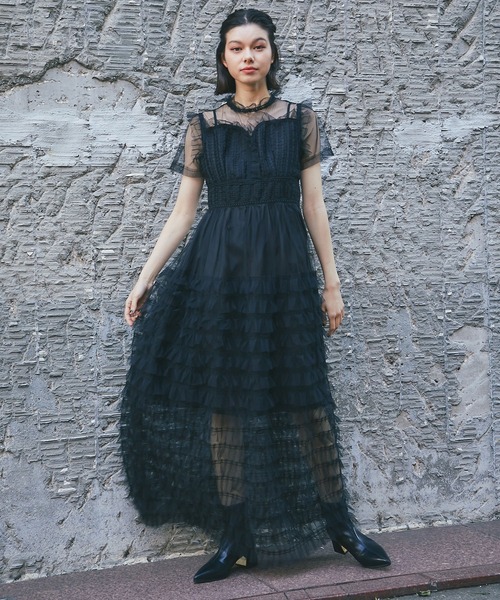 SMILE ORCHID ドレス セルフカット半袖ハイウエストマキシワンピース