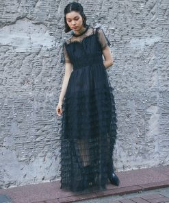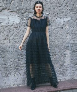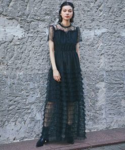 商品名:セルフカット半袖ハイウエストマキシワンピース