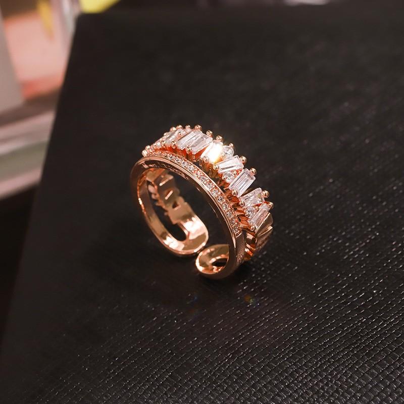 SWAROVSKI リング 指輪 レディース スワロフスキー 2連 可愛い K18金RGP フリーサイズ 金属アレルギー対応