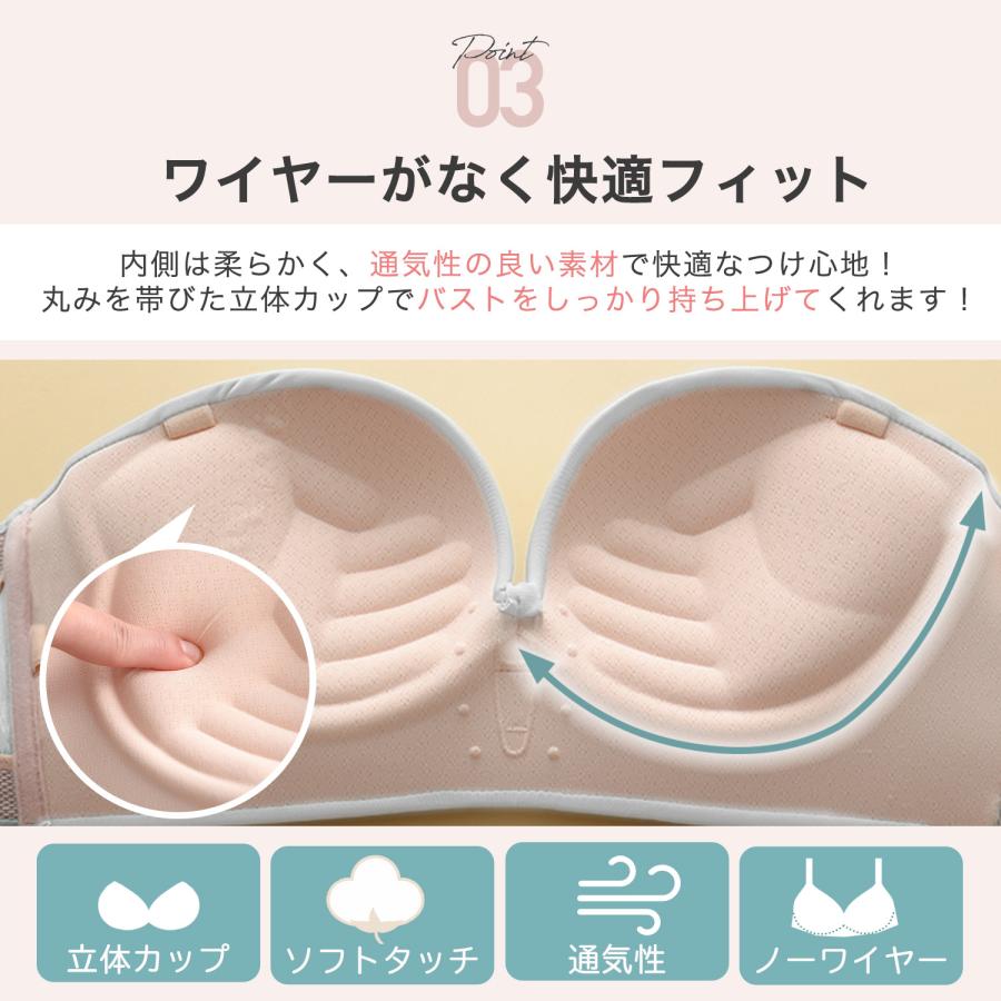TEEN KEEP 【期間限定300円引き】ストラップレス ブラ ブラジャー ずれない 紐なし チューブトップ ヌーブラジャー 脇高 脇肉 補正 ノンワイヤー シームレス バンドゥ